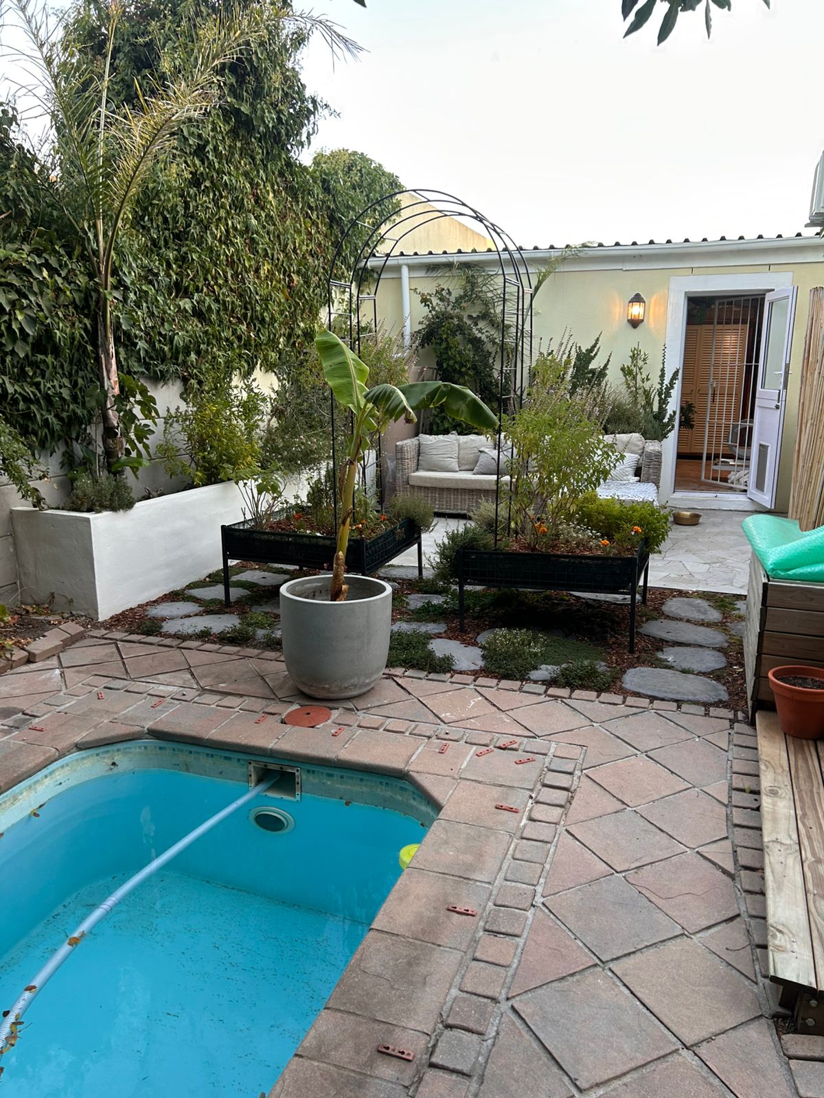 The sunroom, finished with genuine terrazzo tiles and a built-in indoor braai, is filled with beautiful light. Stacking doors open onto a wooden deck overlooking a heated splash pool with a heat pump, plus an open patio ideal for entertaining.