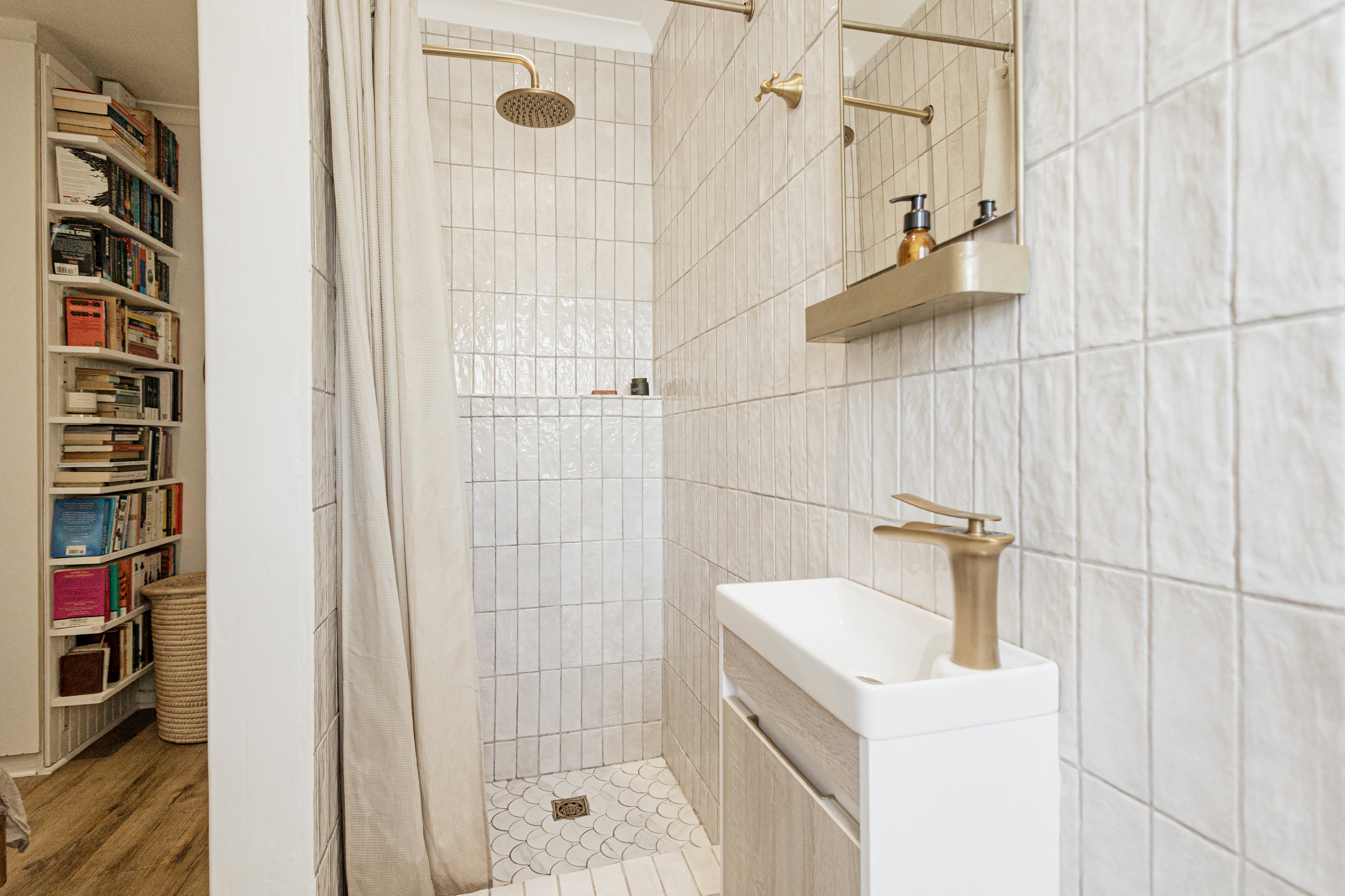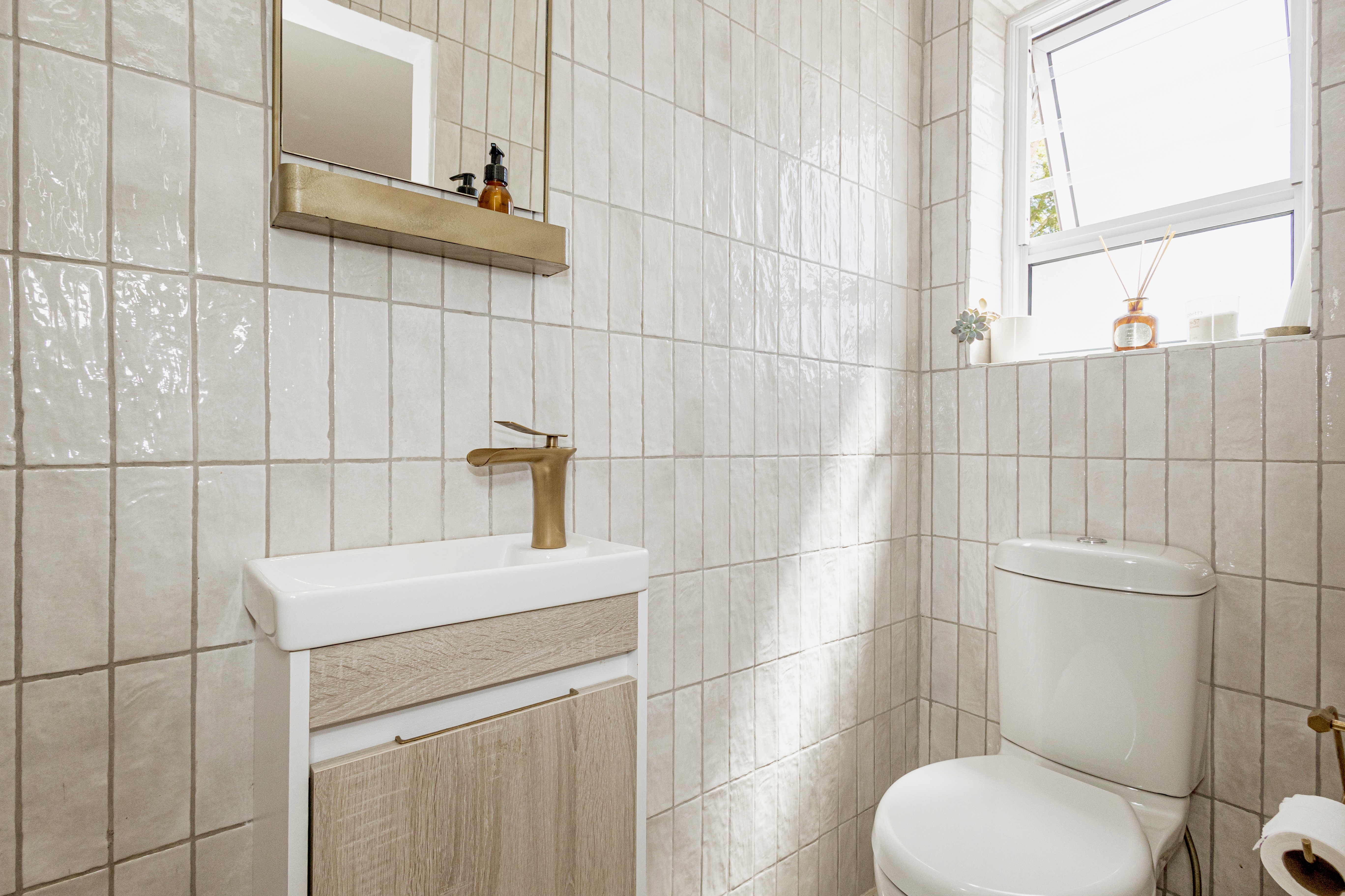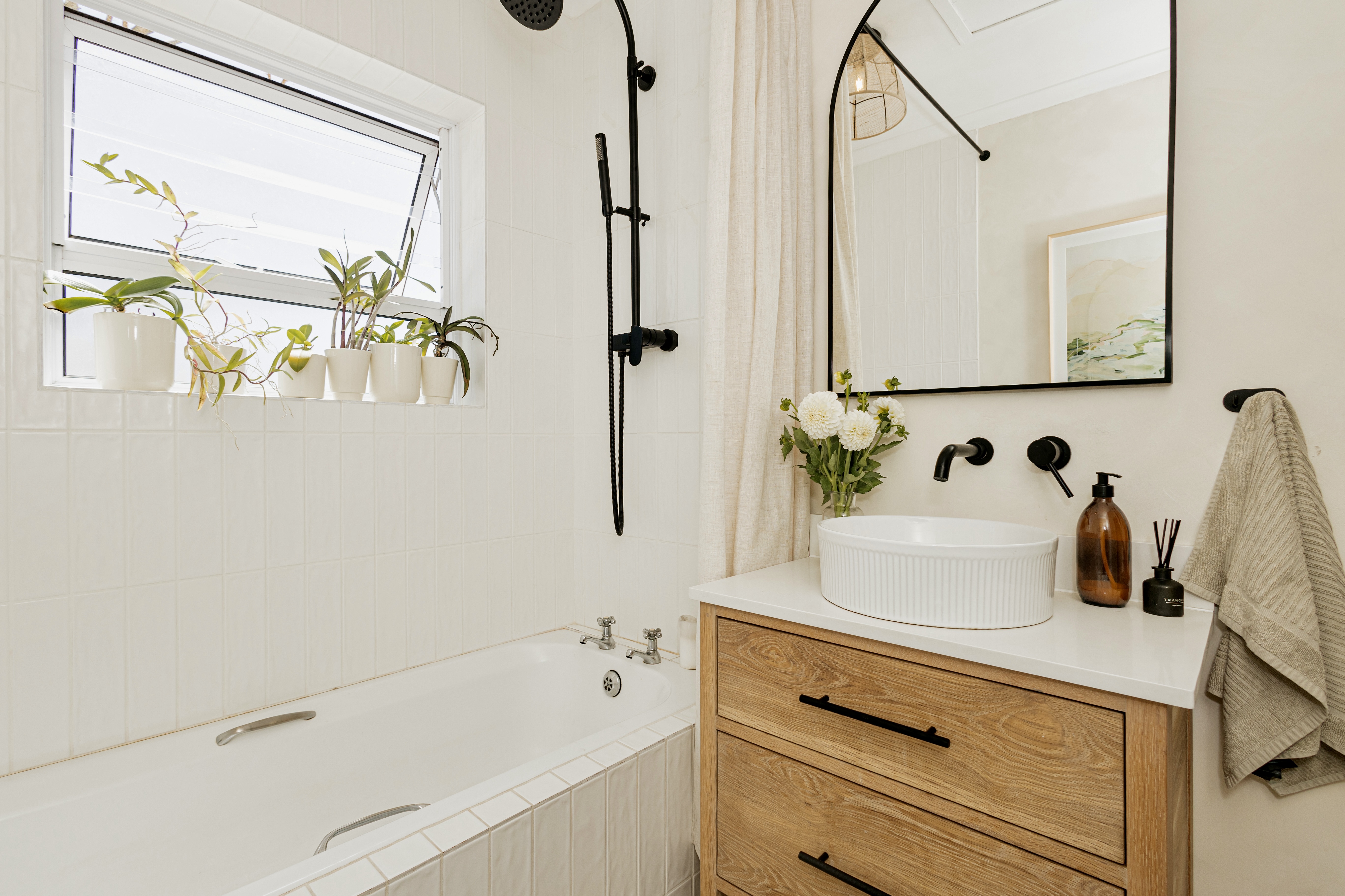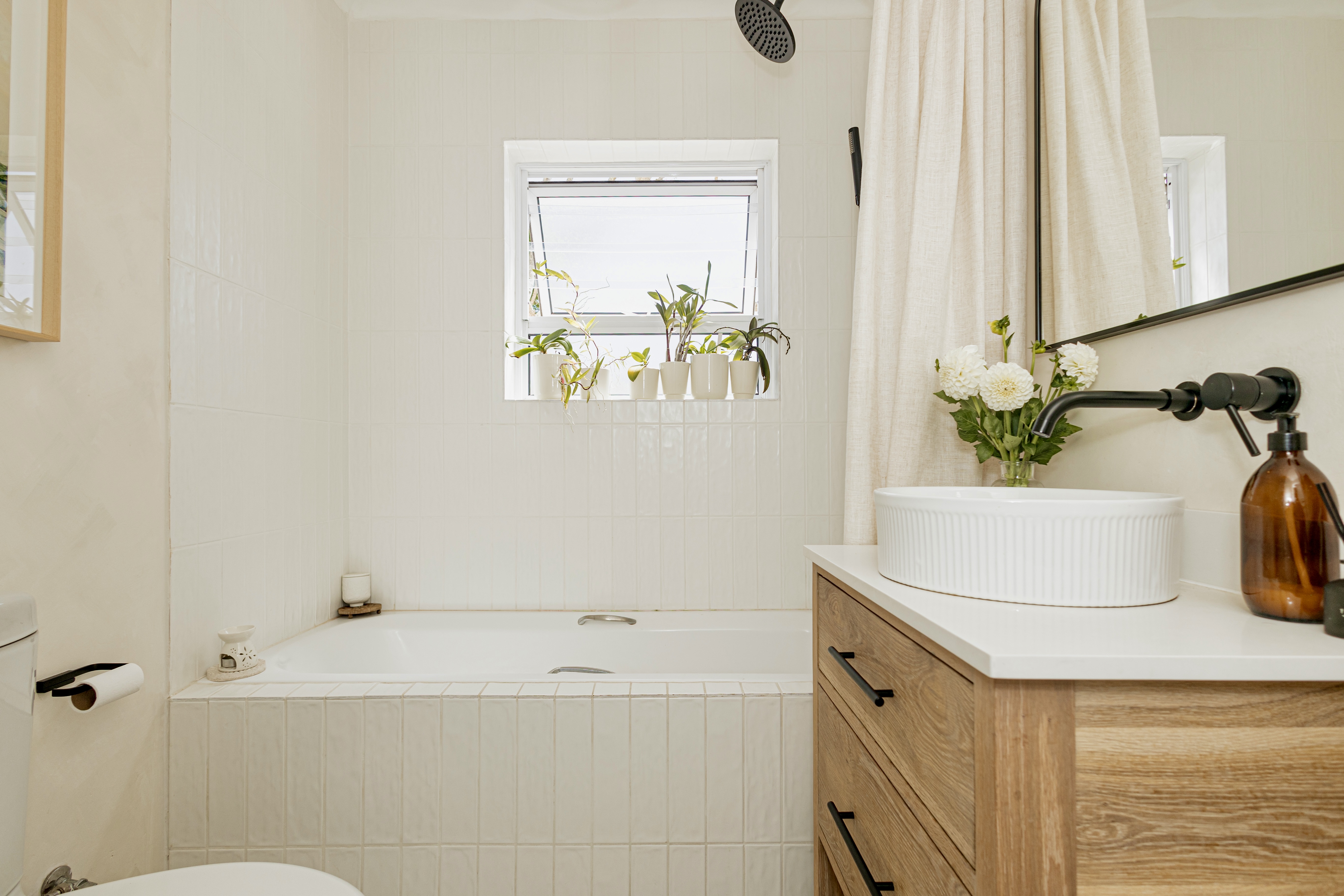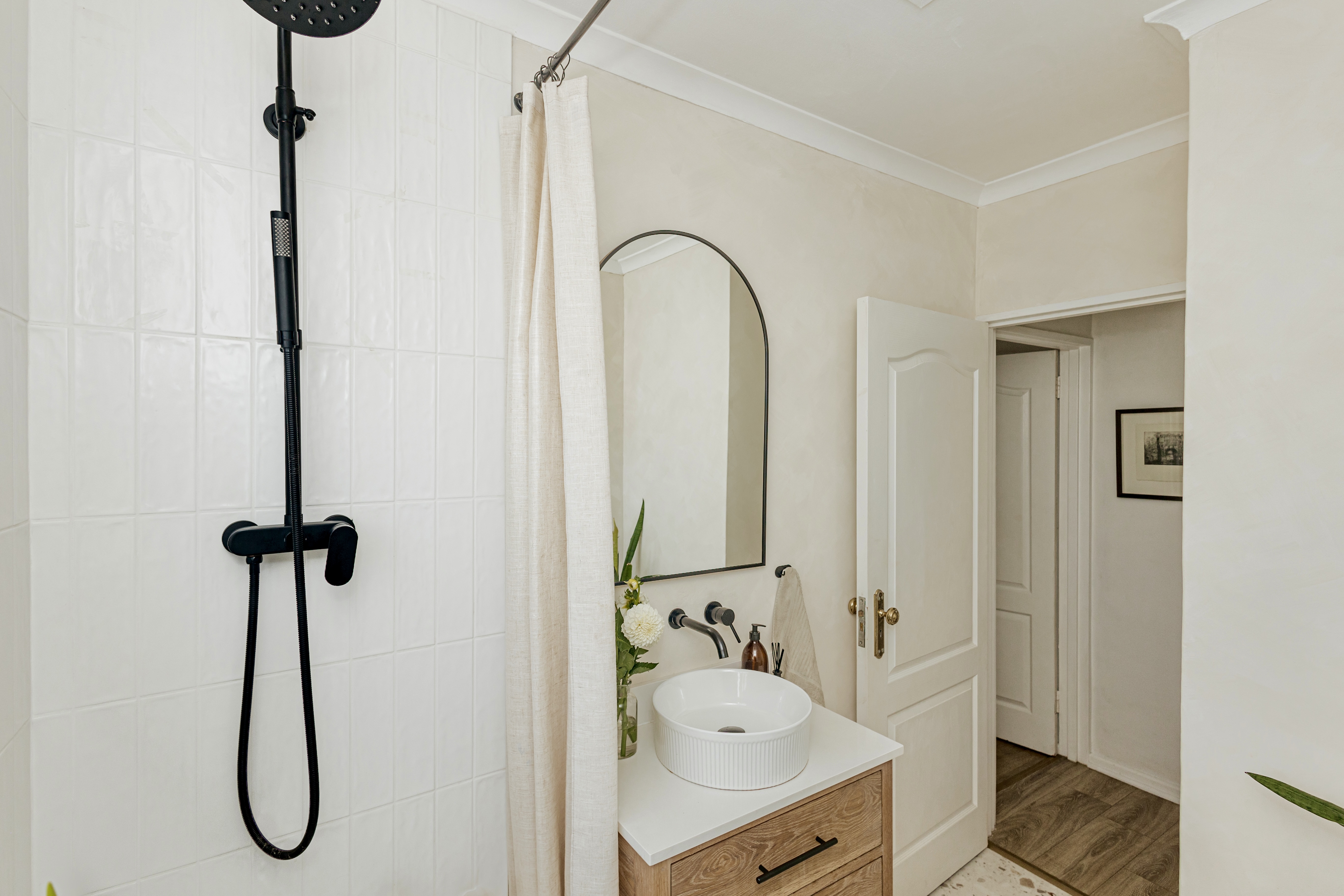 Both bathrooms have been stylishly renovated with high-end, trendy taps, showers and fittings. The larger bathroom includes a custom oak vanity, adding a touch of luxury.
