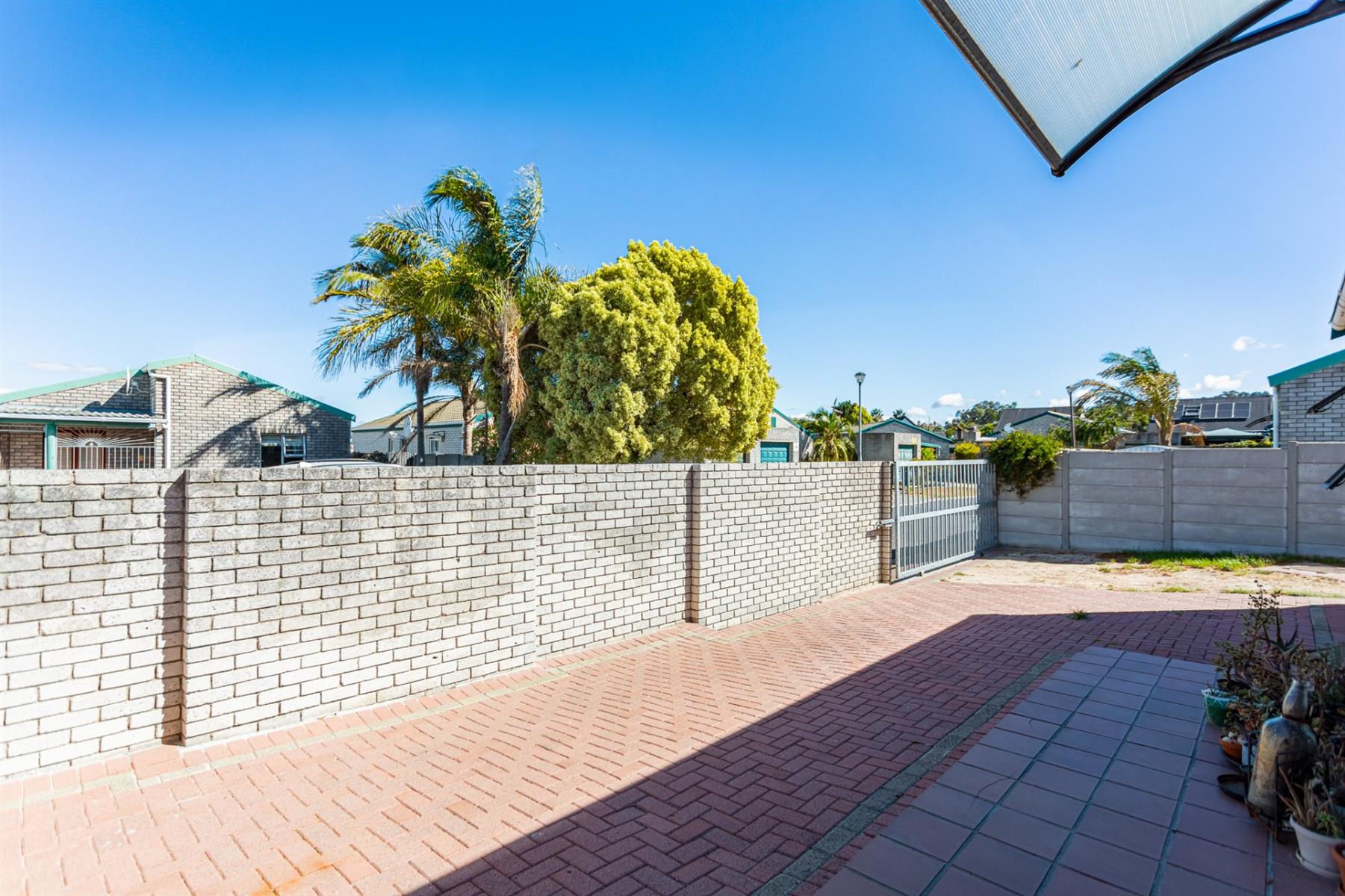 This property is located within a well-maintained gated complex. The home features a fully enclosed, paved yard with perimeter walls with low-maintenance outdoor living. A Single garage with matching finishes complements the attractive face-brick exterior.