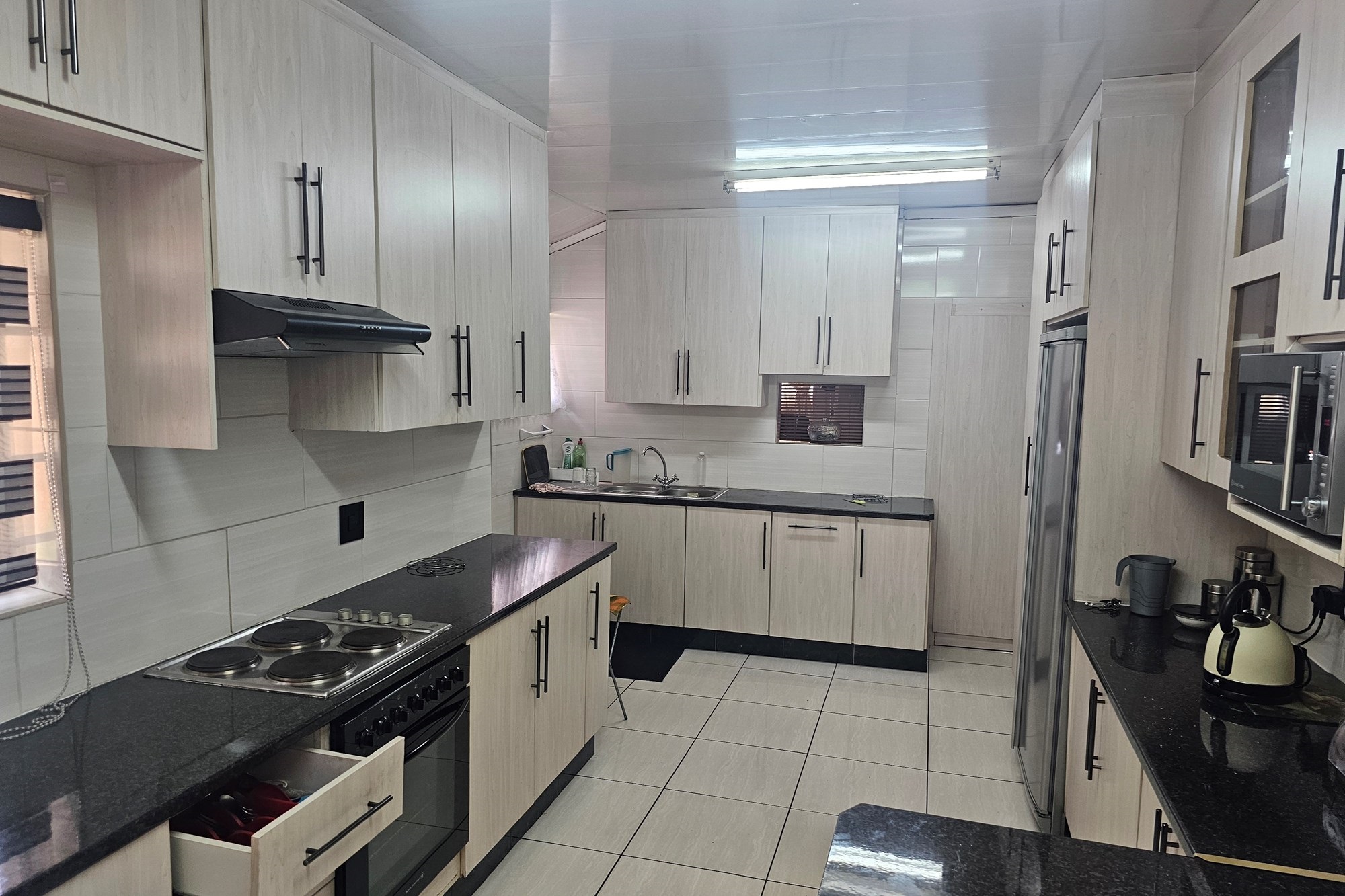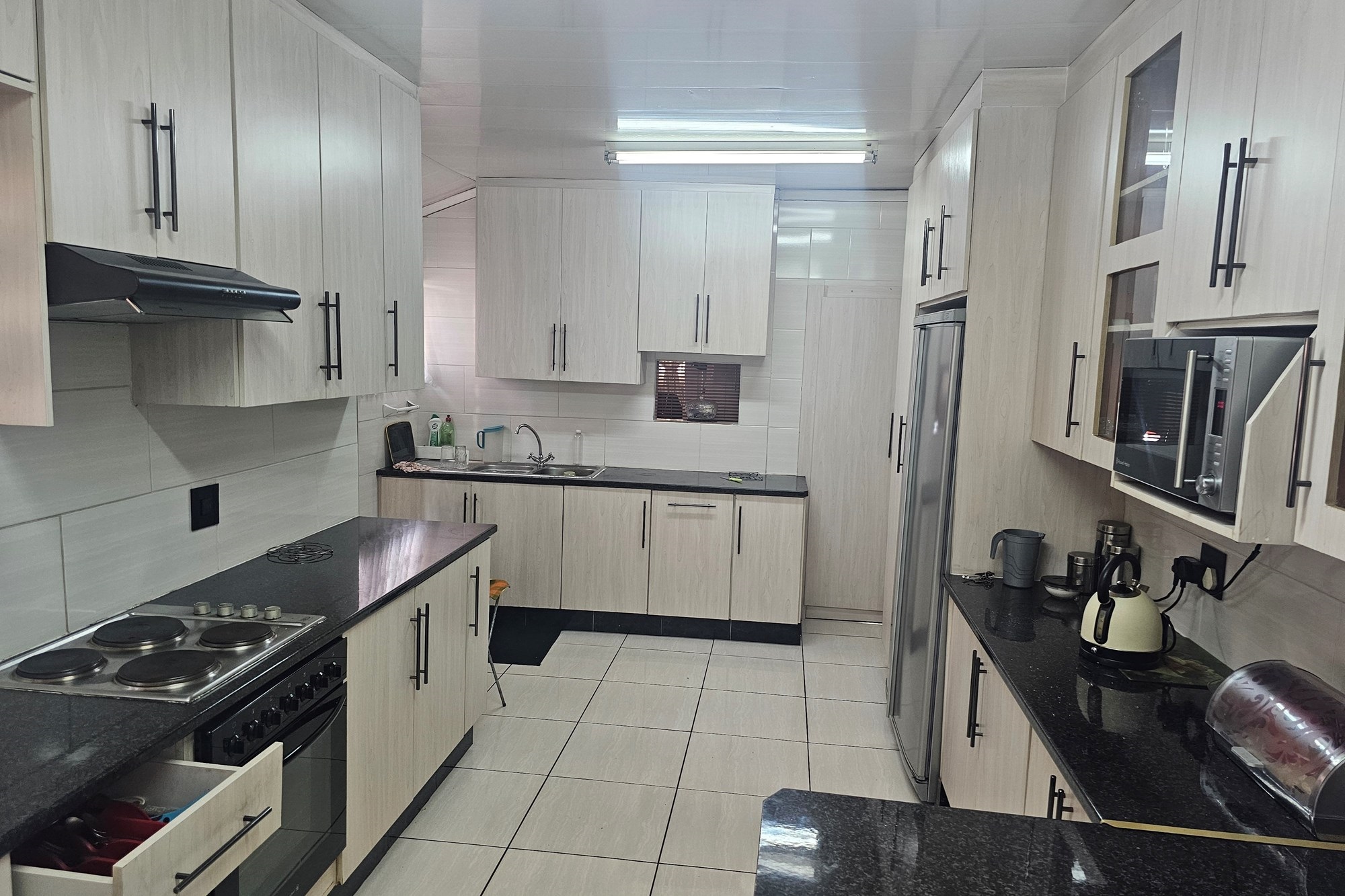 Spacious Living & Private Retreats 3 well-sized bedrooms, two family bathrooms with toilets. Living area, TV lounge, Seamless dining room – The main living area, well thought design kitchen open, laundry area directly onto a kitchen plus built-in braai. Fully automated double garage – Carport for additional car.