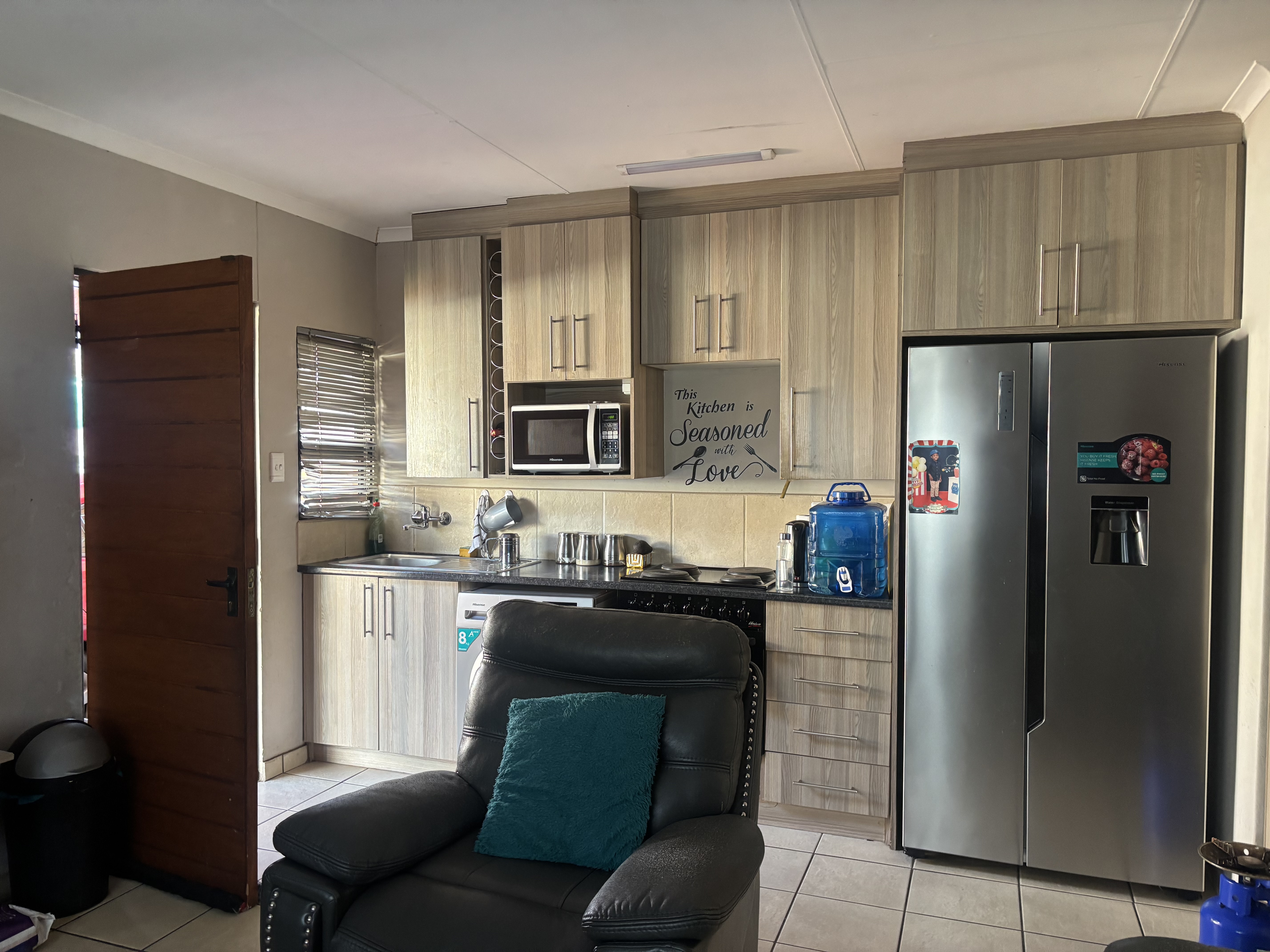 Designed for easy upkeep, the home includes a small garden where children can play. The property is fully walled and secured with an electric fence, and it comes with a Jojo tank and pump, an alarm system, and prepaid electricity. Don’t miss out—call us today!