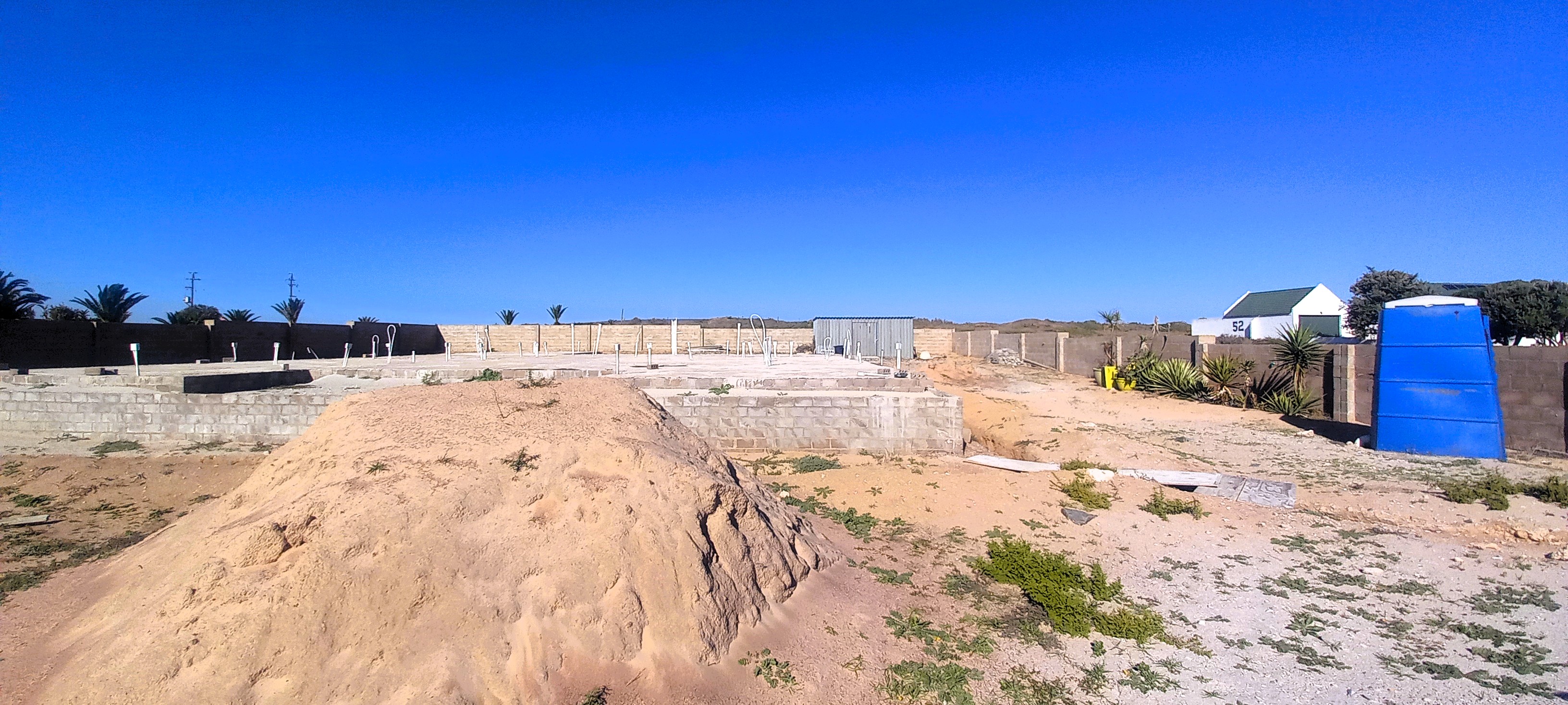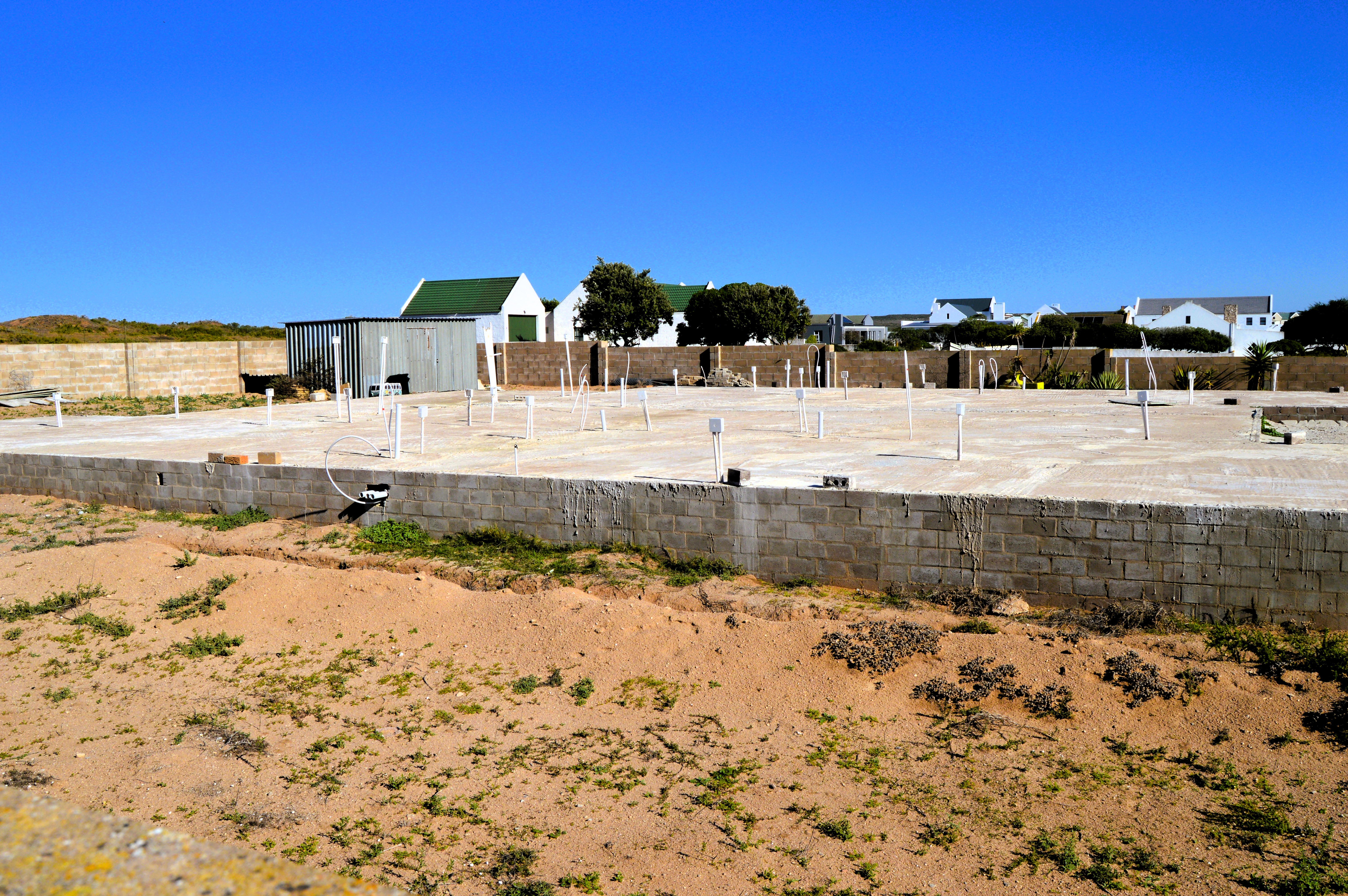 This plot is presented to you on a Exclusive Mandate. Just a two-hour drive from Cape Town, you'll discover Duyker Eiland, situated along a stunning stretch of coastline on the West Coast, near the Columbine Nature Reserve. This suburb offers one of the few opportunities in St Helena Bay to acquire plots of this size. The plot in question is already fully walled, with a foundation and floor in place, and comes with approved building plans. A huge bonus is that the plot faces North to North West which means sun all day long and facing away from the South Easter wind.