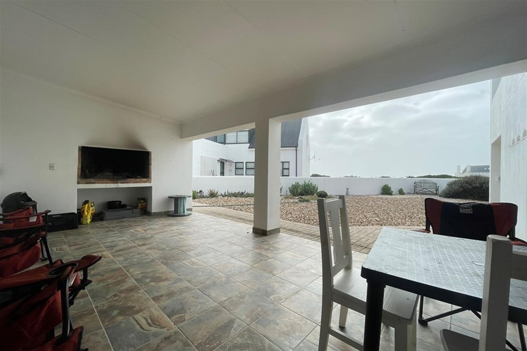 The layout is open and practical, designed for relaxed living and easy entertaining. The braai room, complete with a built-in braai, flows directly into the lounge, dining area, and kitchen. Large stacker doors connect the living space to a covered outdoor area with a second braai area—ideal for weekends with friends or quiet evenings by the coast.