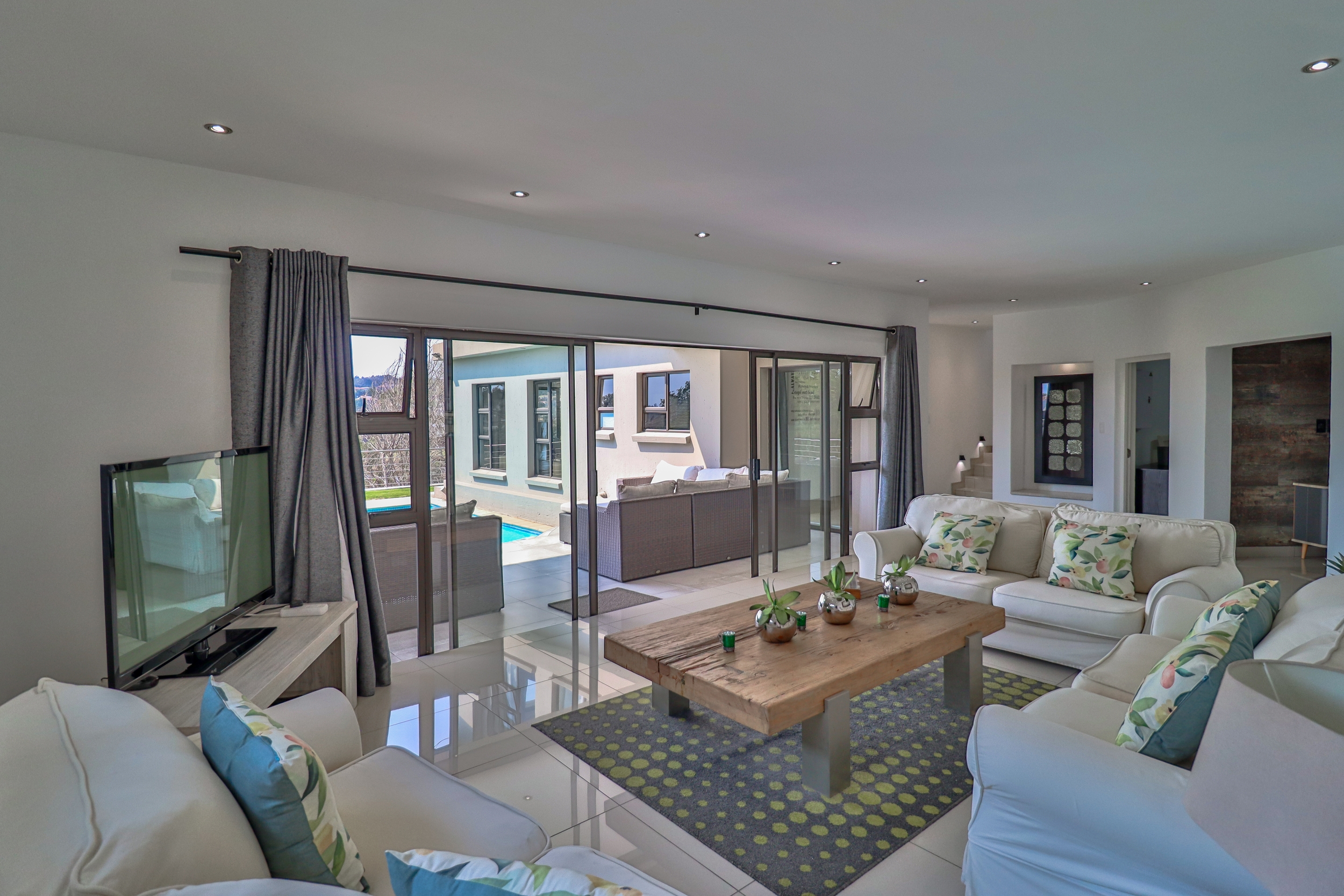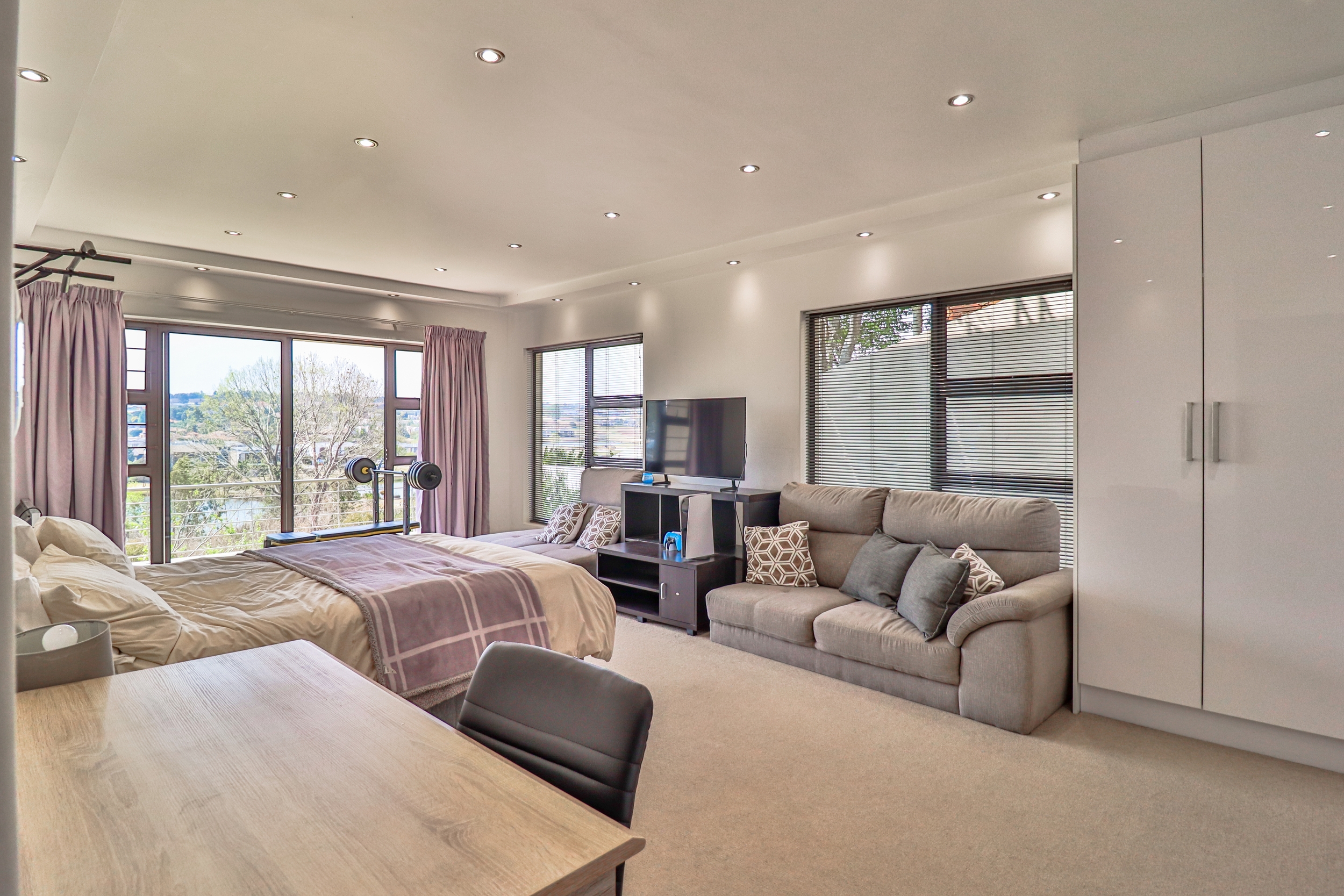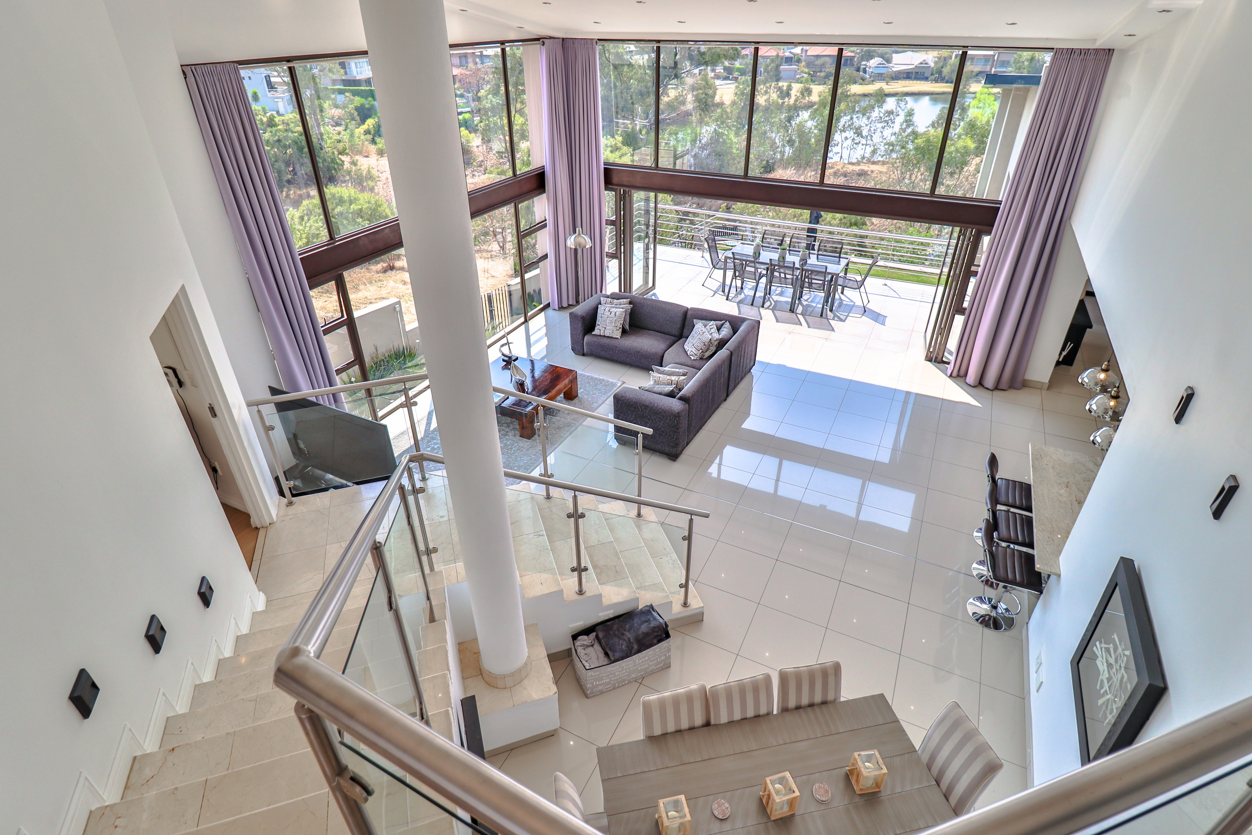 SHOWDAY VIEW BY APPOINTMENT ONLY! Experience luxury living with magnificent views over the golf course and tranquil dams in this beautifully designed home in Eagle Canyon Golf Estate. Boasting four spacious en-suite bedrooms, six bathrooms, and a private study, this residence offers both elegance and practicality for modern family living. The open-plan gourmet kitchen flows seamlessly into the lounge, which opens onto a balcony—perfect for soaking in the panoramic views and enjoying sunset evenings.