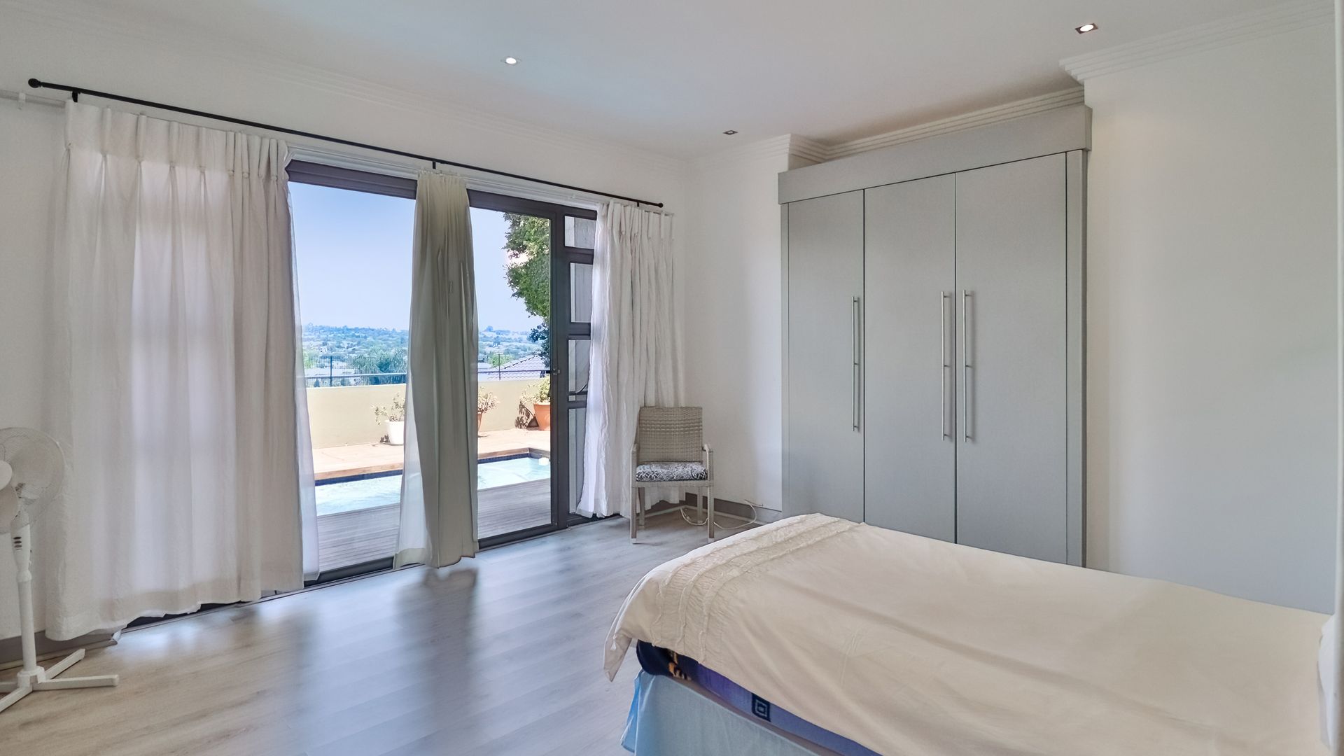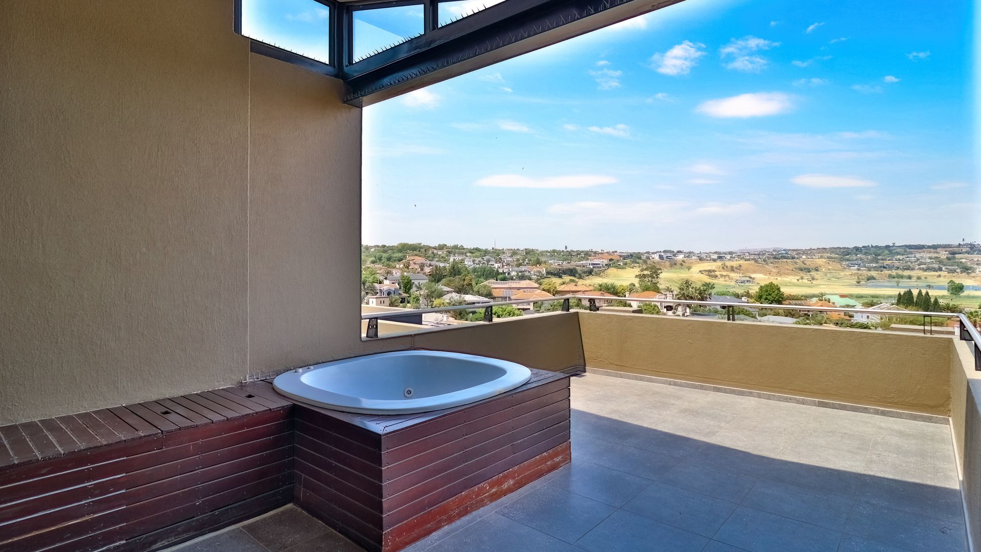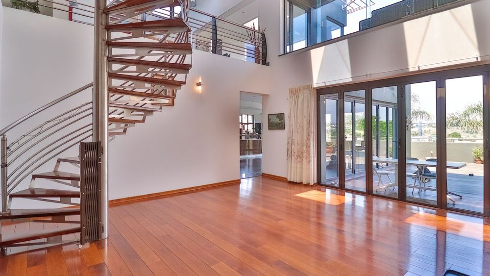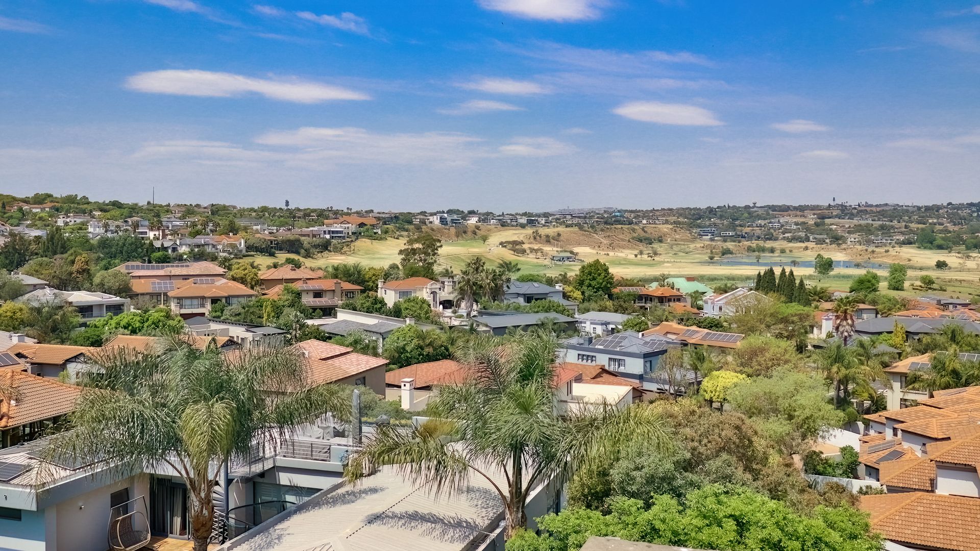 Step into refined elegance with this exceptional modern home offering breathtaking panoramic views over the entire golf course and prestigious estate. Boasting four spacious en-suite bedrooms, jacuzzi, outdoor shower, and a study, his residence is designed for both comfort and sophistication. The heart of the home features a sleek, open-plan kitchen (with large scullery/laundry) flowing into the lounge area, and out onto a balcony with uninterrupted vistas.