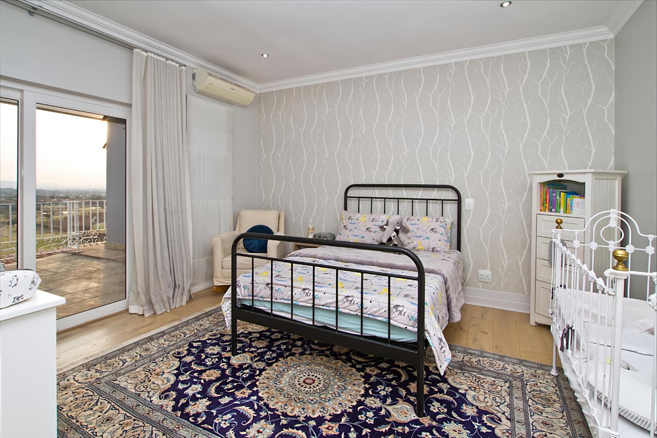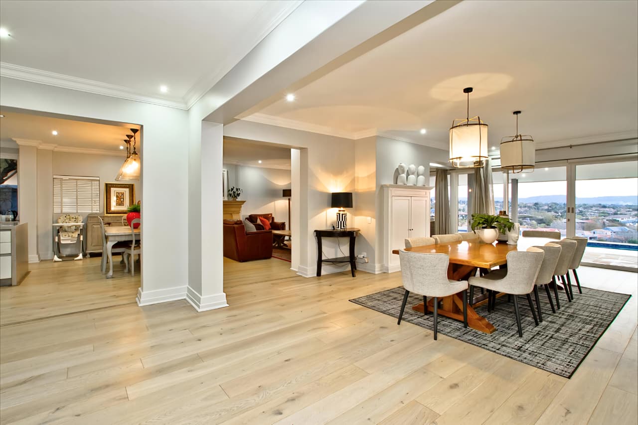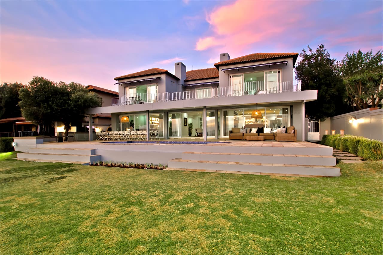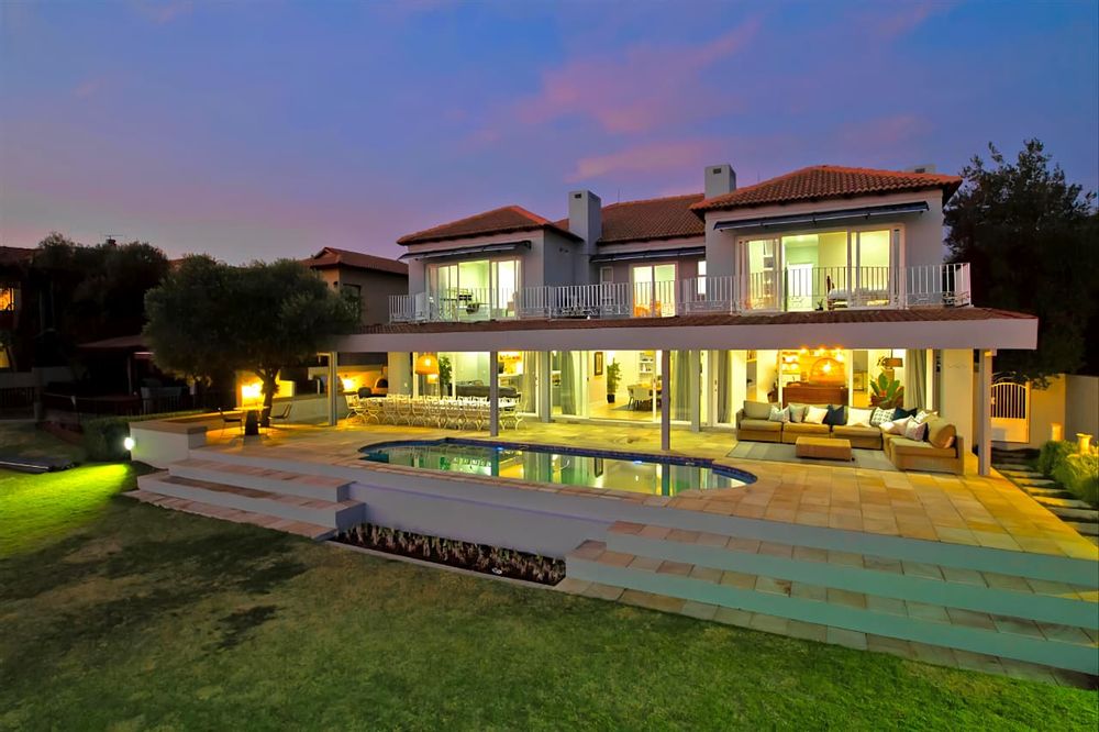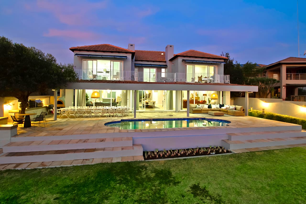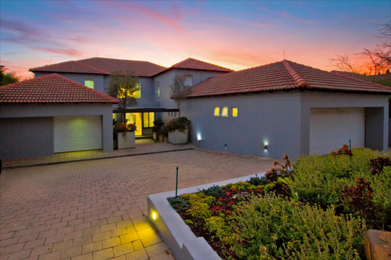 Each of the five bedrooms features a private en-suite bathroom, with the main suite capturing sweeping golf-course and Magalies mountain views. Expansive open-plan living and dining areas flow seamlessly to a covered entertainment patio, sparkling pool and landscaped garden — perfect for both family time and refined entertaining.