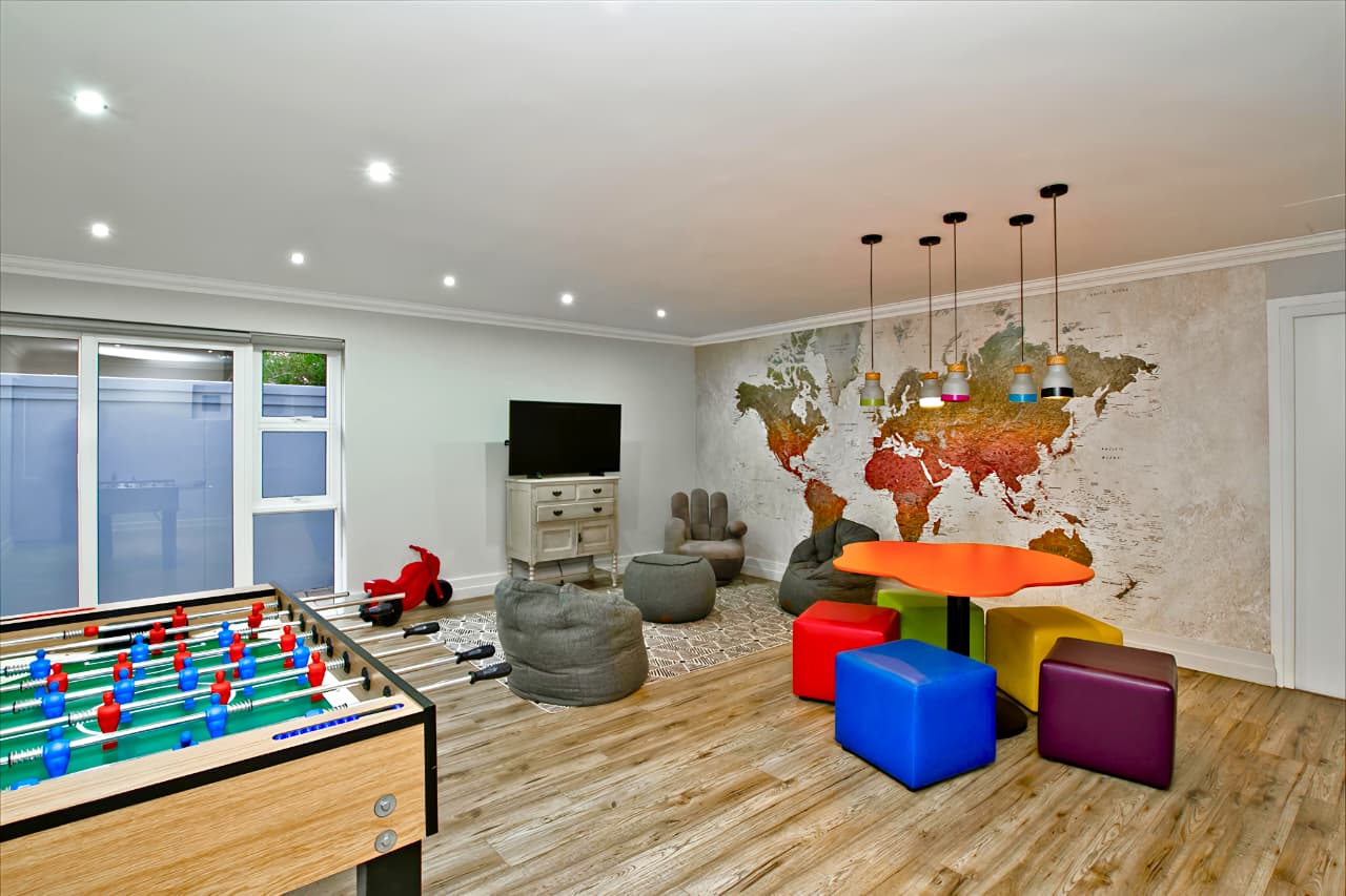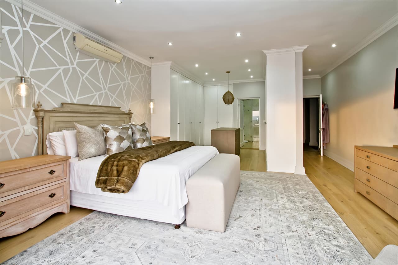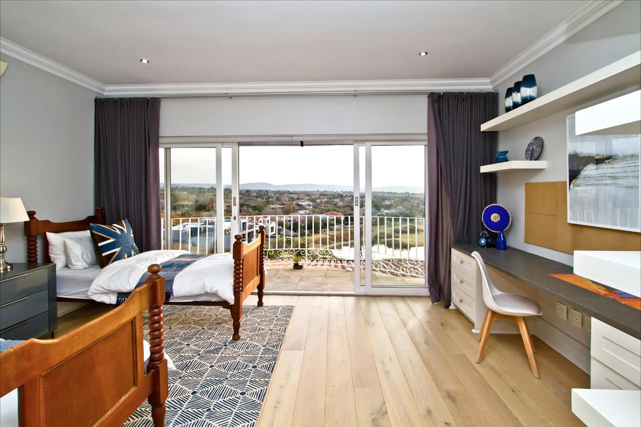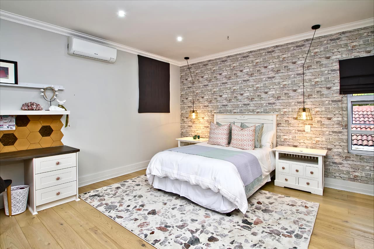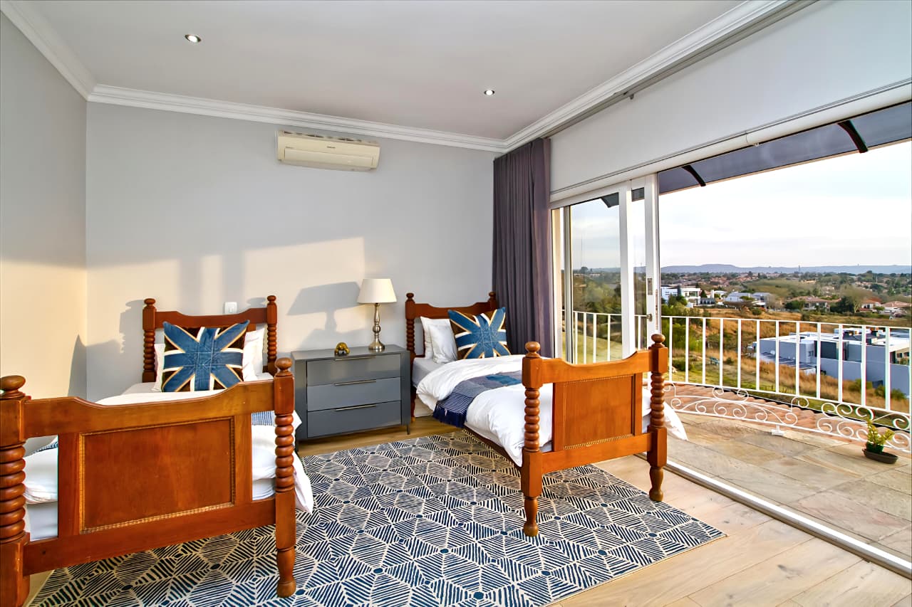 Each of the five bedrooms features a private en-suite bathroom, with the main suite capturing sweeping golf-course and Magalies mountain views. Expansive open-plan living and dining areas flow seamlessly to a covered entertainment patio, sparkling pool and landscaped garden — perfect for both family time and refined entertaining.