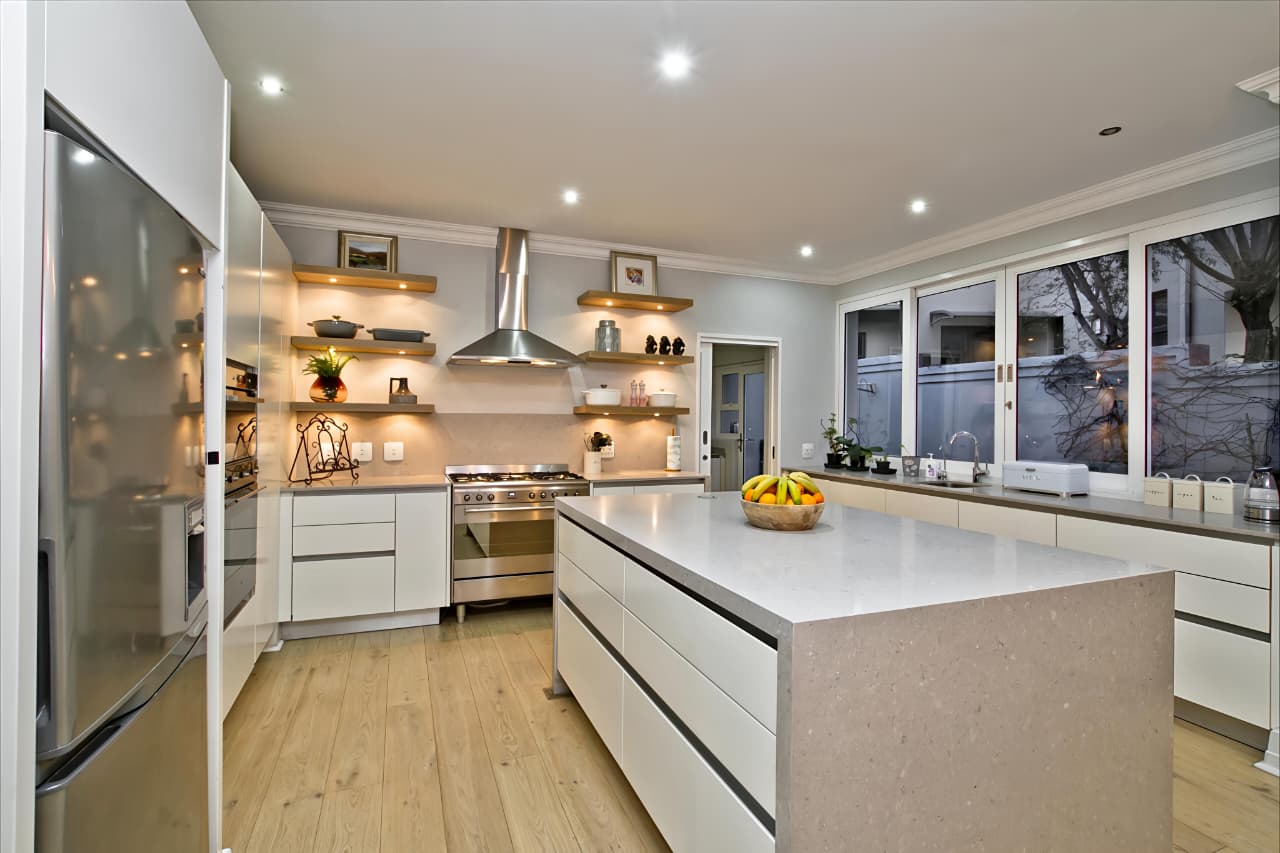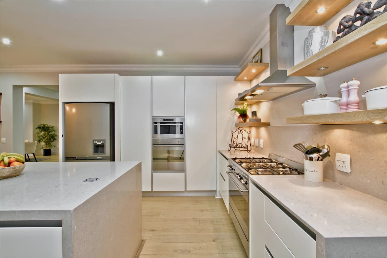 The modern kitchen with centre island and separate scullery anchors the home, complemented by multiple lounges, generous natural light and high-end finishes throughout.