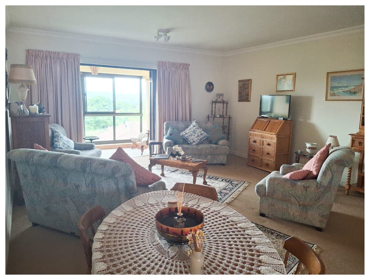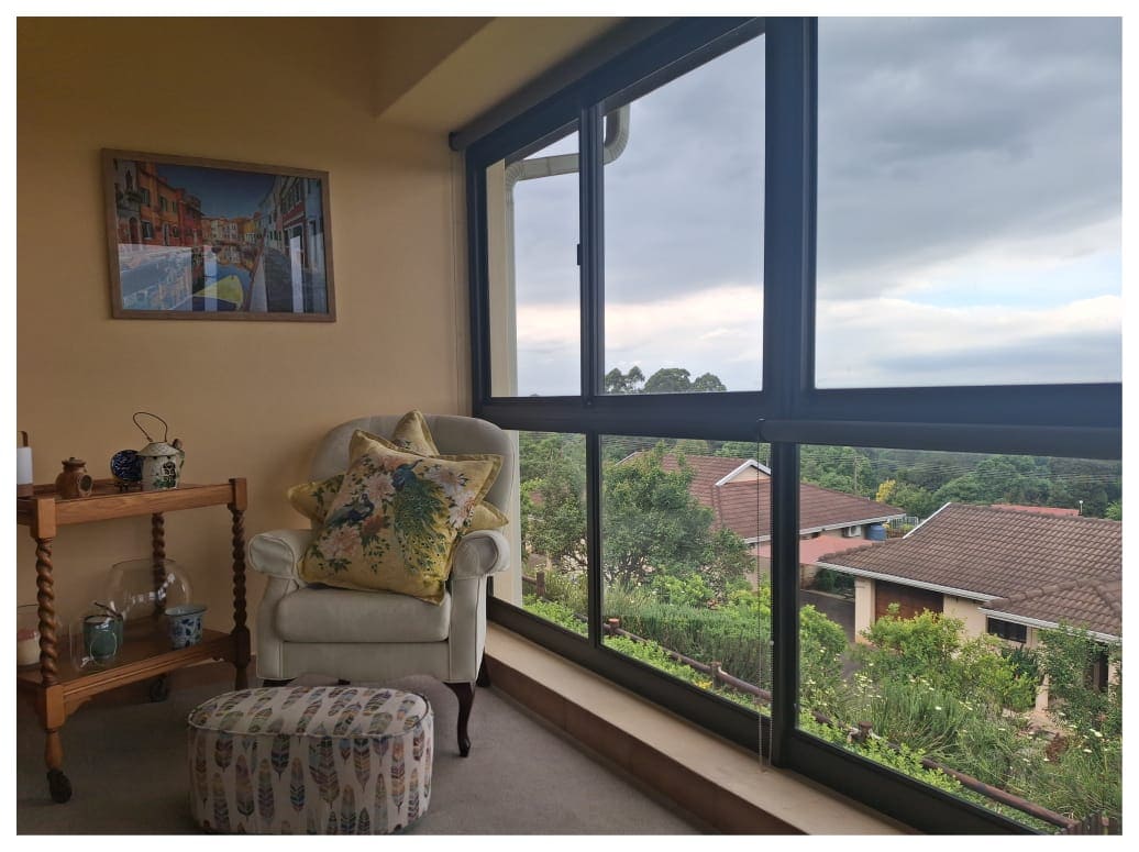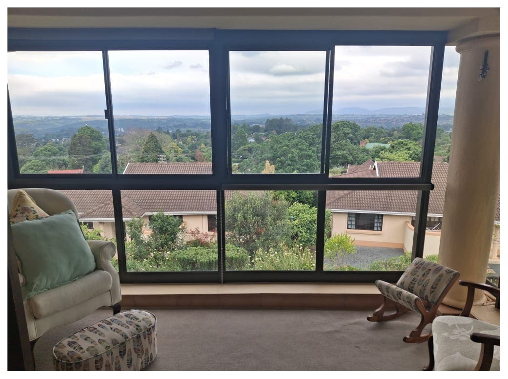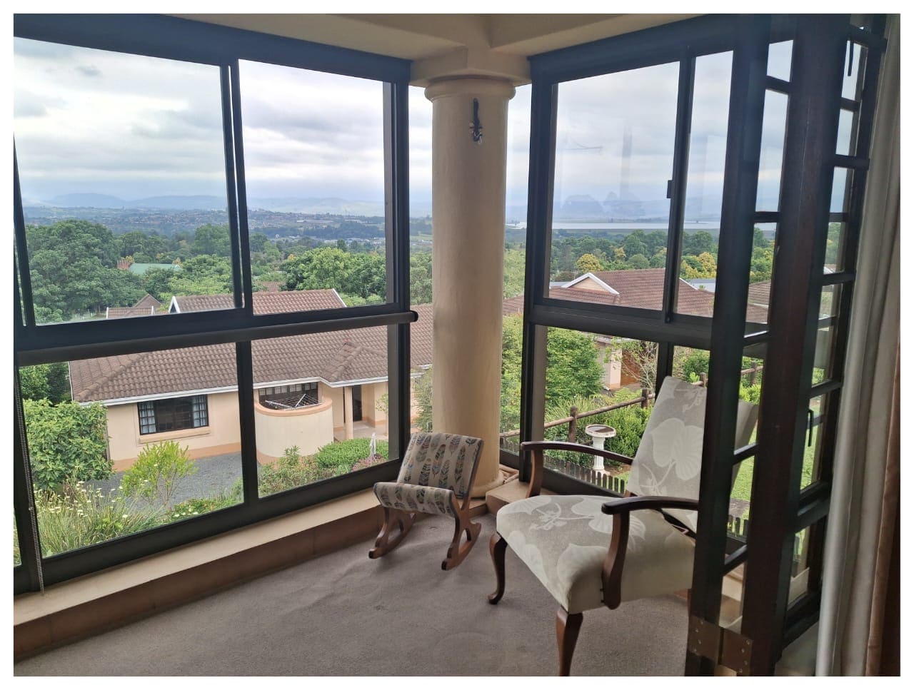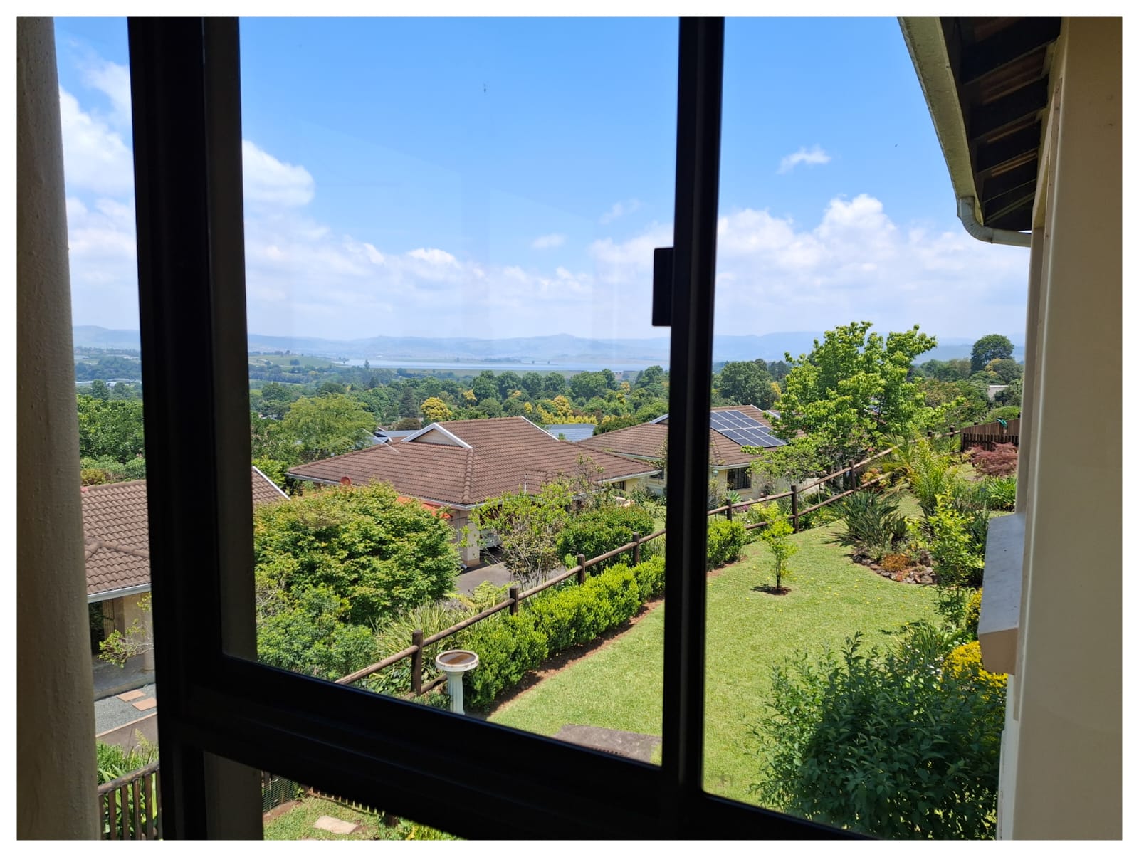 An open-plan lounge and dining-room is spacious and leads out to an enclosed balcony with spectacular views over Midmar Dam and far into the distance. The windows slide open to allow in fresh air.