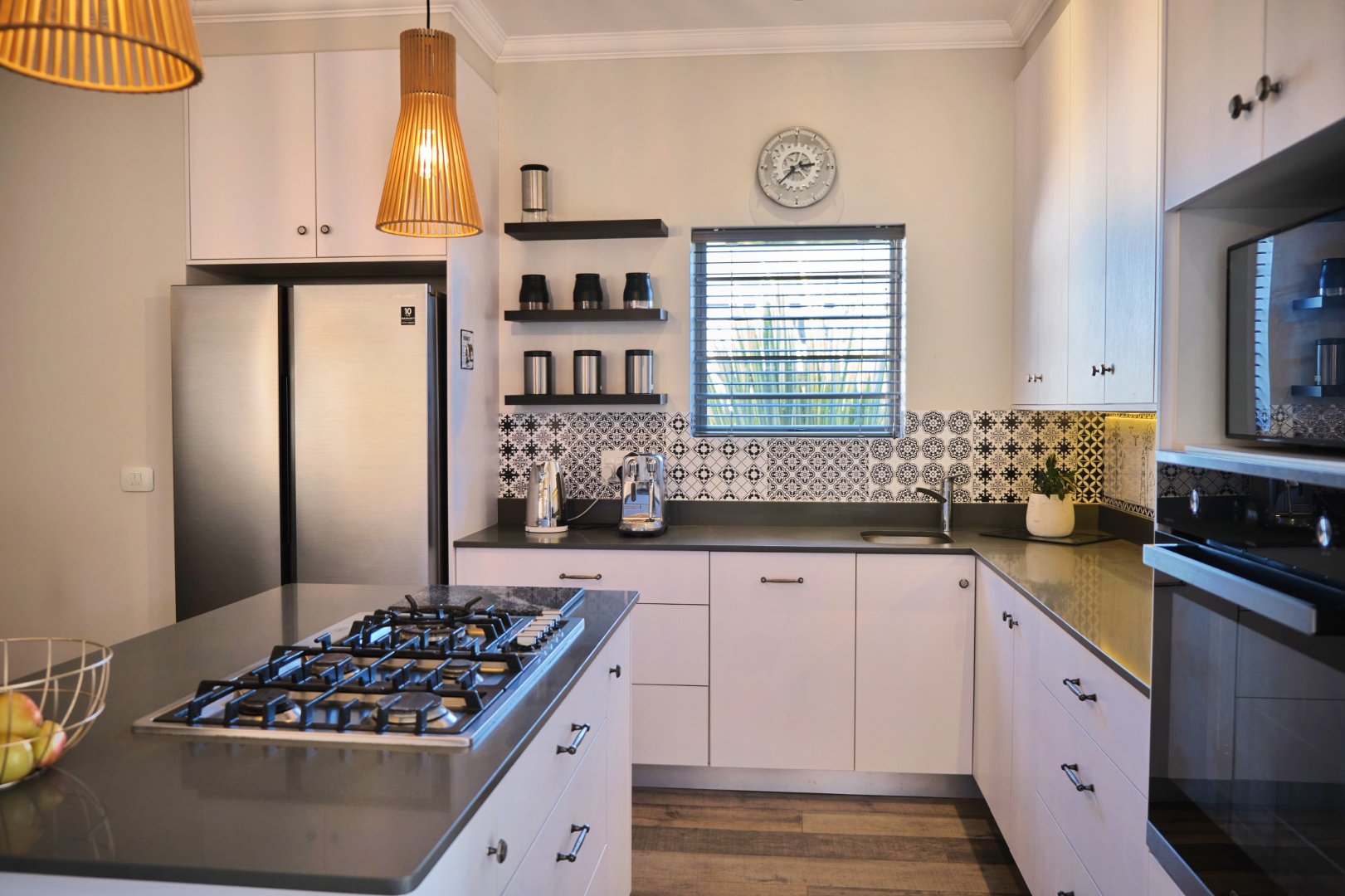 * Gas hob, electric oven, and gas geyser