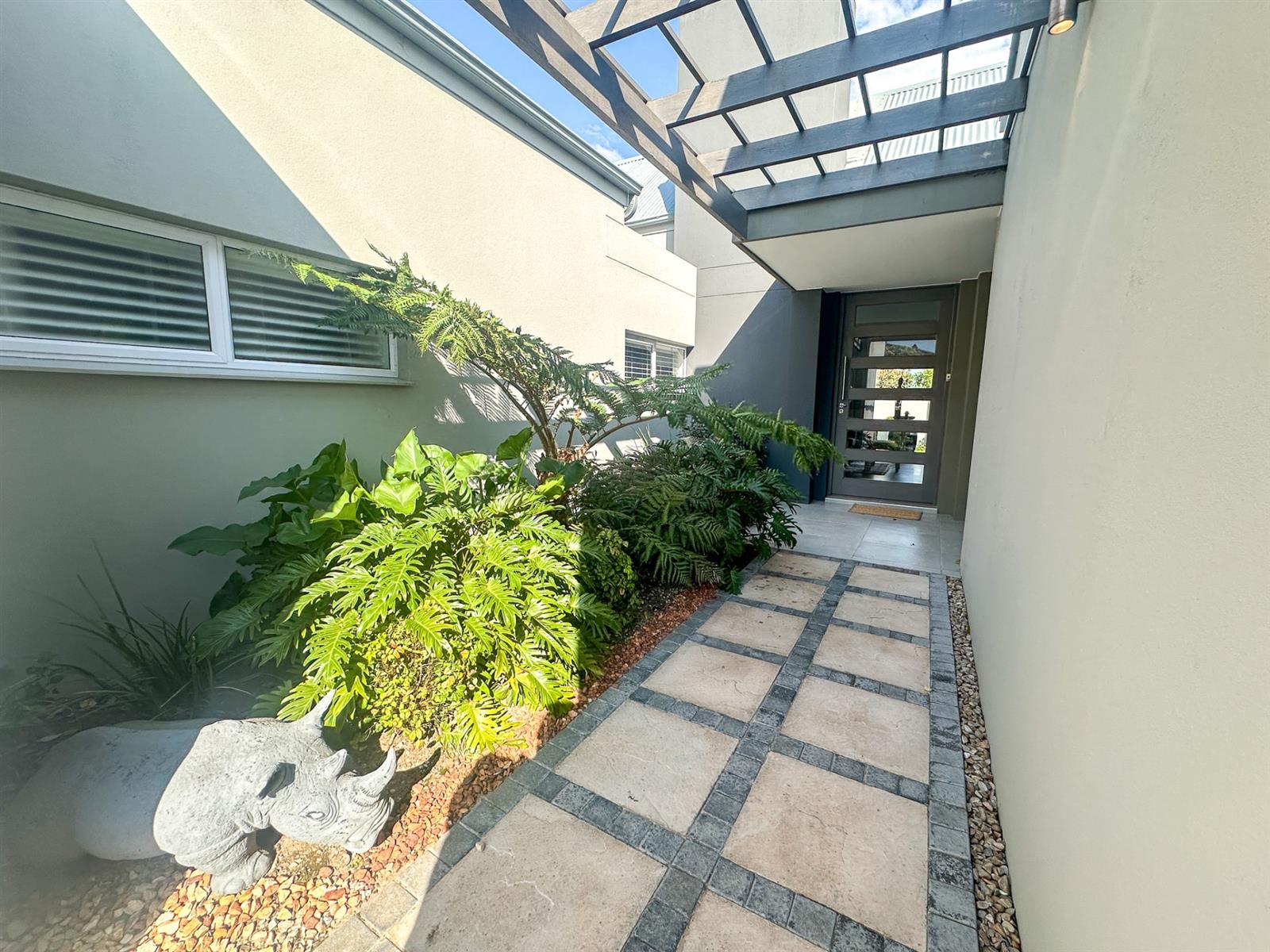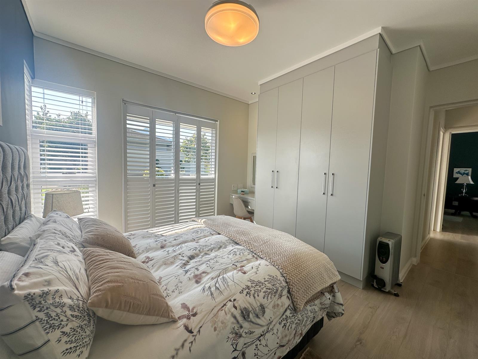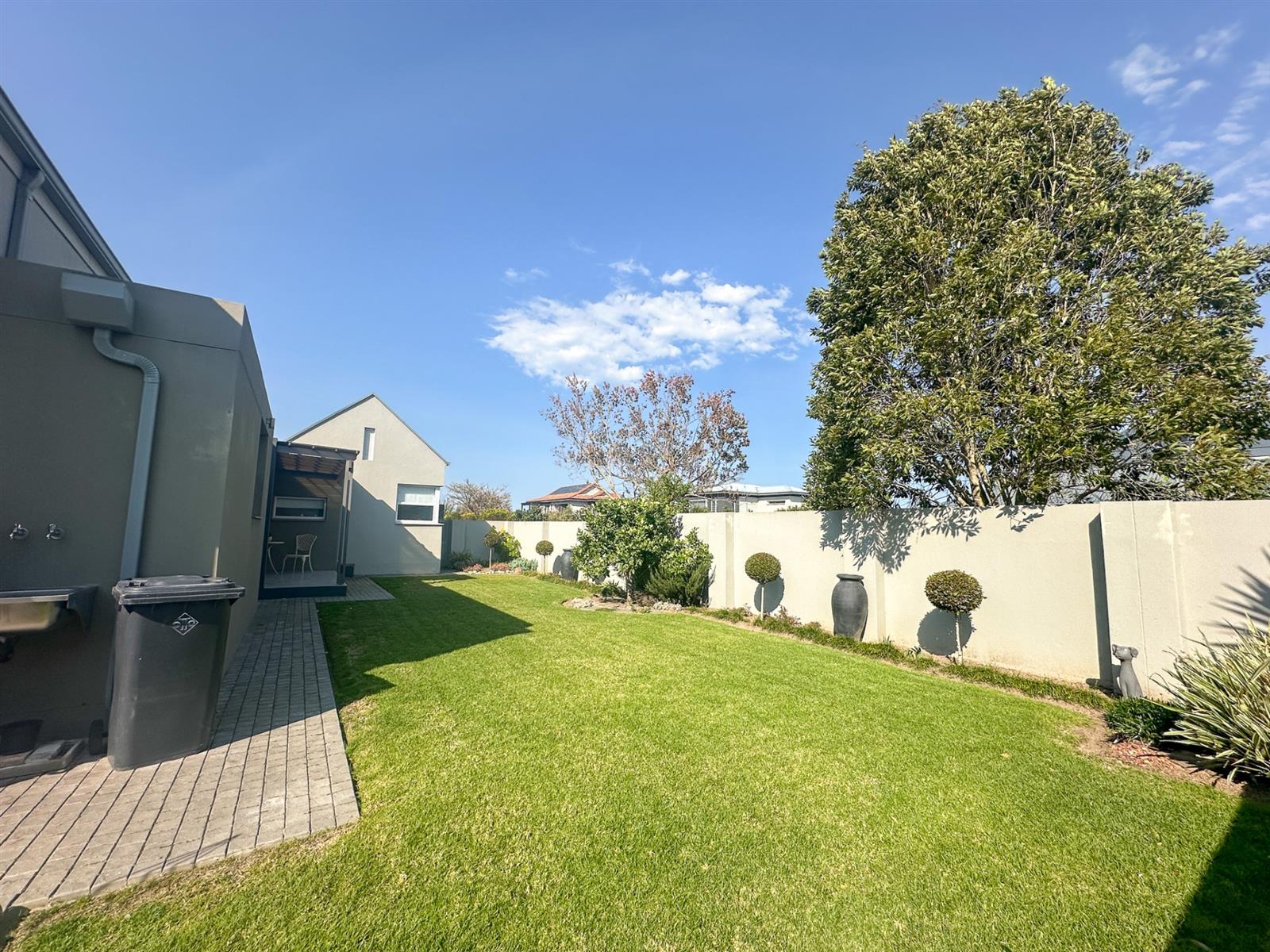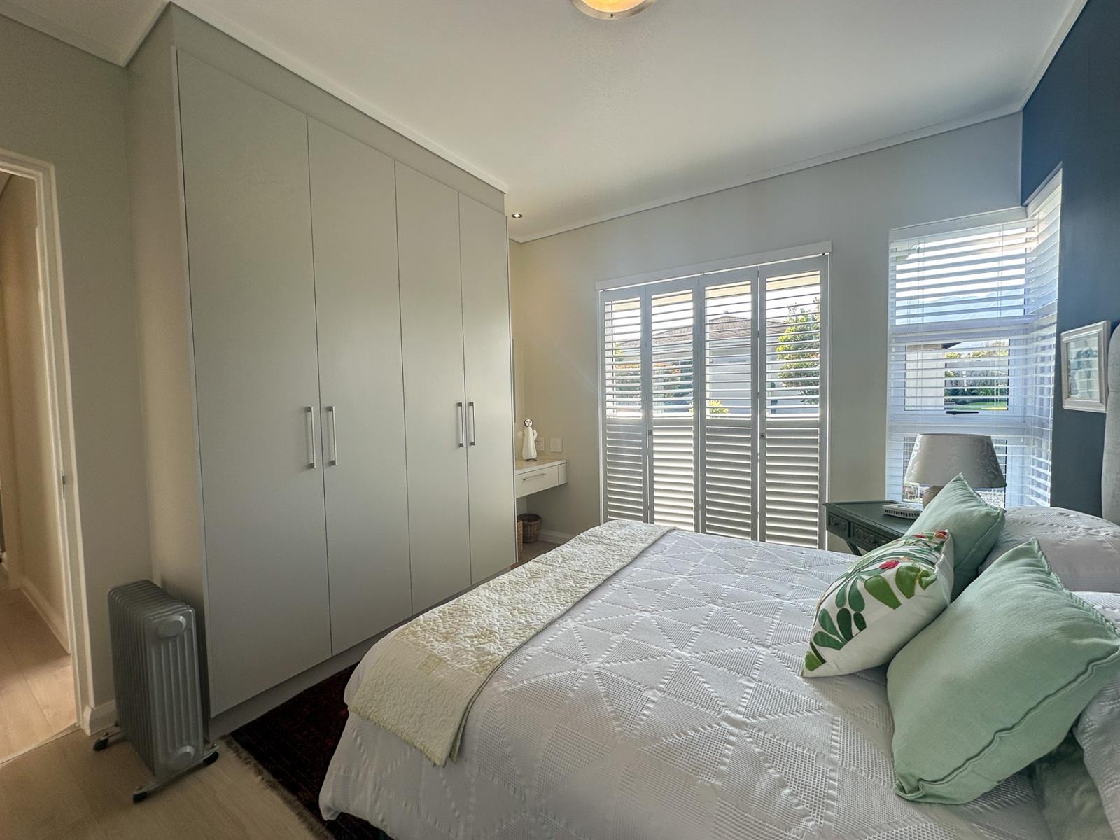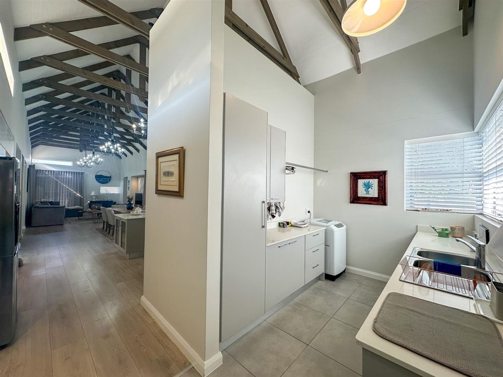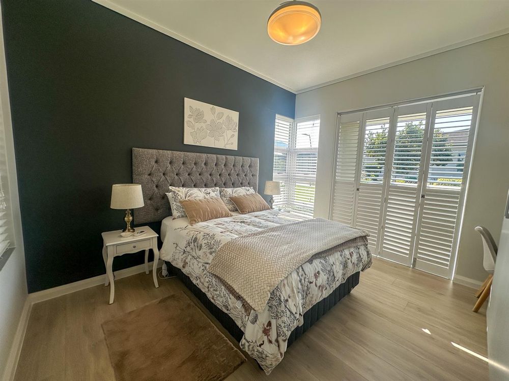 The house offers four spacious bedrooms and three bathrooms, designed for comfort and privacy. The main bedroom is a luxurious retreat with ample built-in cupboards, a full en-suite bathroom, and direct access to the garden and patio. The three additional bedrooms are well-appointed with built-in cupboards and vinyl flooring. Two of these bedrooms share a full bathroom, while the other has its own en-suite. The property also features a double automated garage, a full solar system with a backup inverter, and is fully enclosed and pet-friendly. Residents of Earls Court Estate enjoy exclusive access to top-tier amenities, including a clubhouse, gym, tennis court, and dog park.