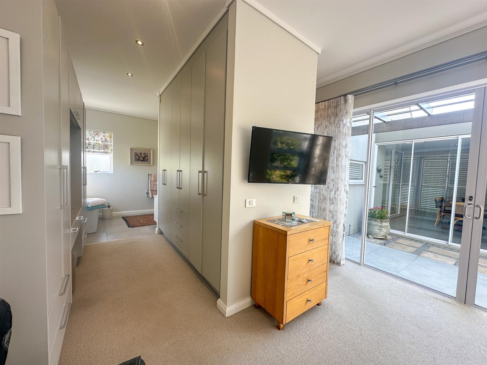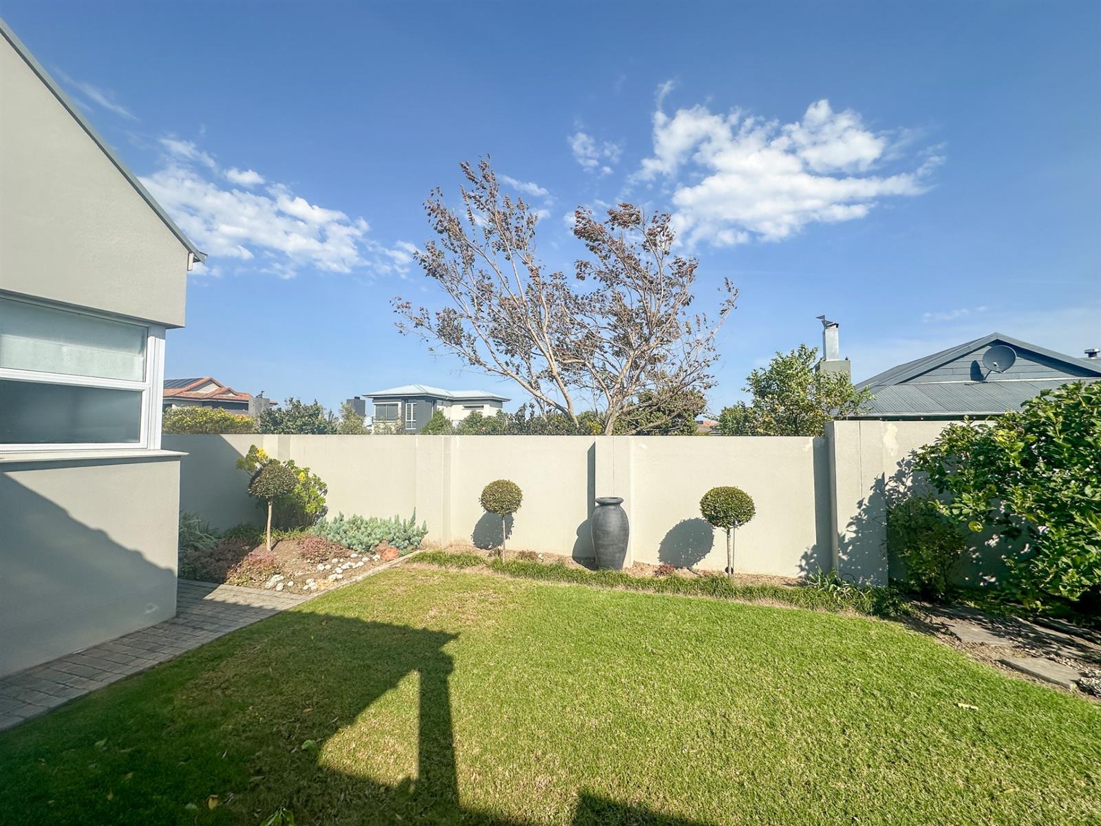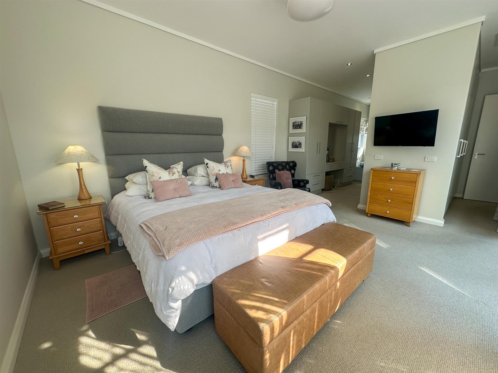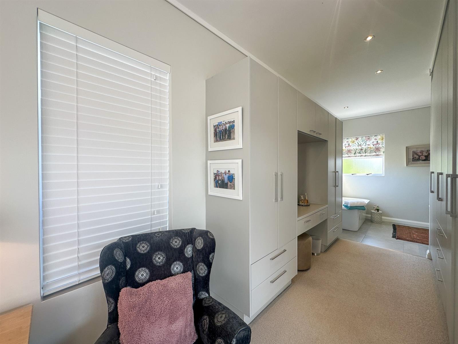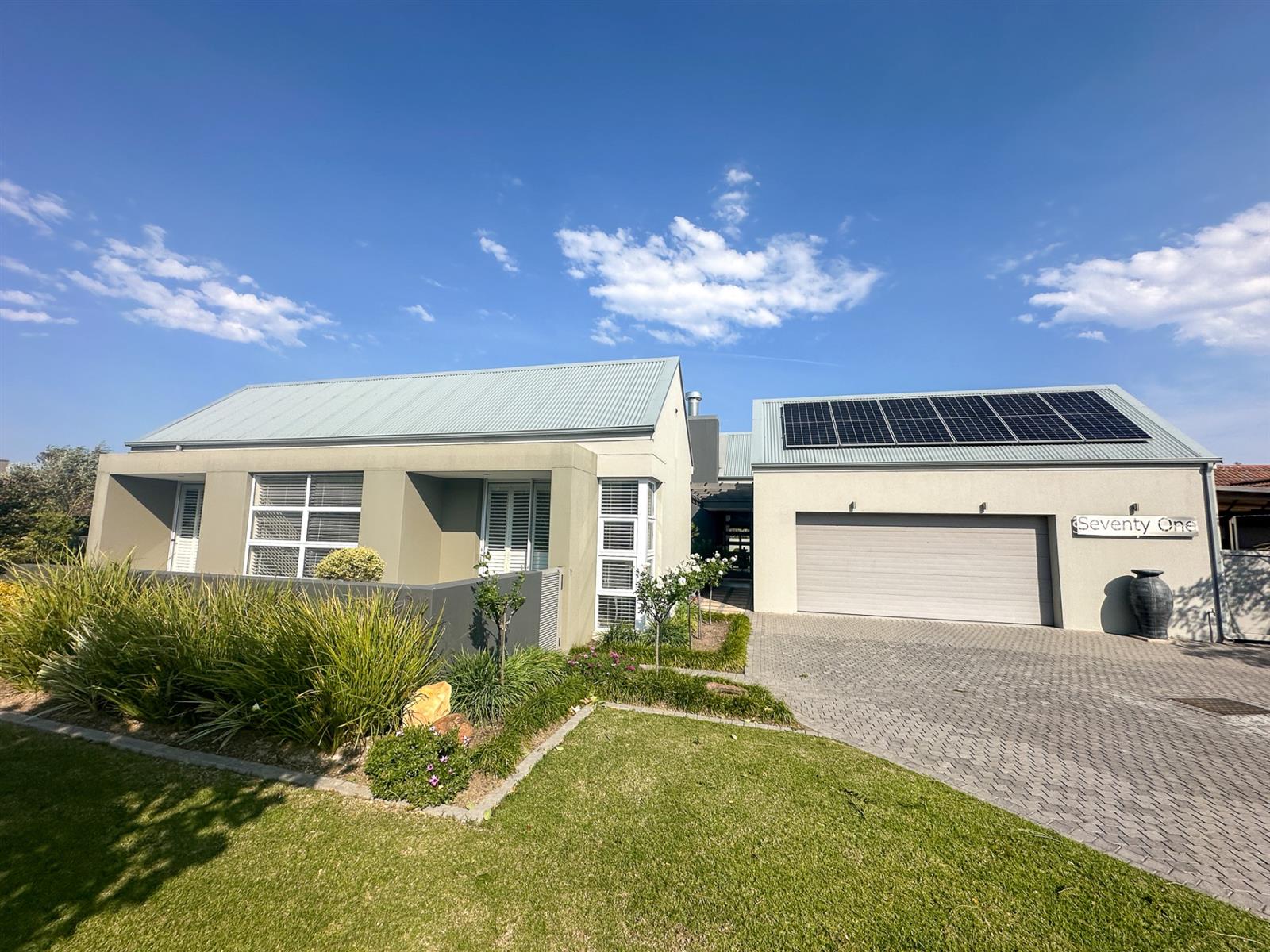 The house offers four spacious bedrooms and three bathrooms, designed for comfort and privacy. The main bedroom is a luxurious retreat with ample built-in cupboards, a full en-suite bathroom, and direct access to the garden and patio. The three additional bedrooms are well-appointed with built-in cupboards and vinyl flooring. Two of these bedrooms share a full bathroom, while the other has its own en-suite. The property also features a double automated garage, a full solar system with a backup inverter, and is fully enclosed and pet-friendly. Residents of Earls Court Estate enjoy exclusive access to top-tier amenities, including a clubhouse, gym, tennis court, and dog park.