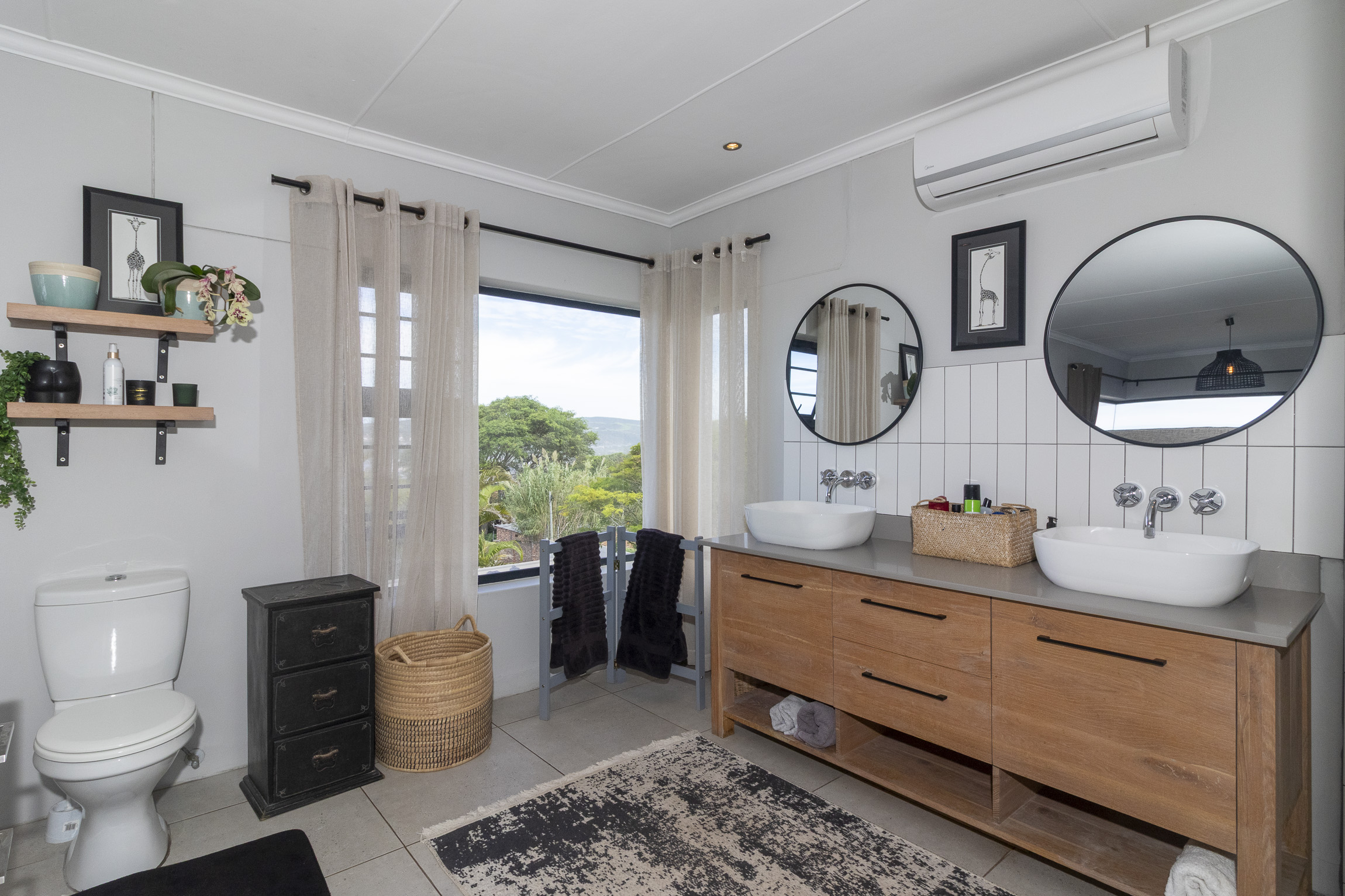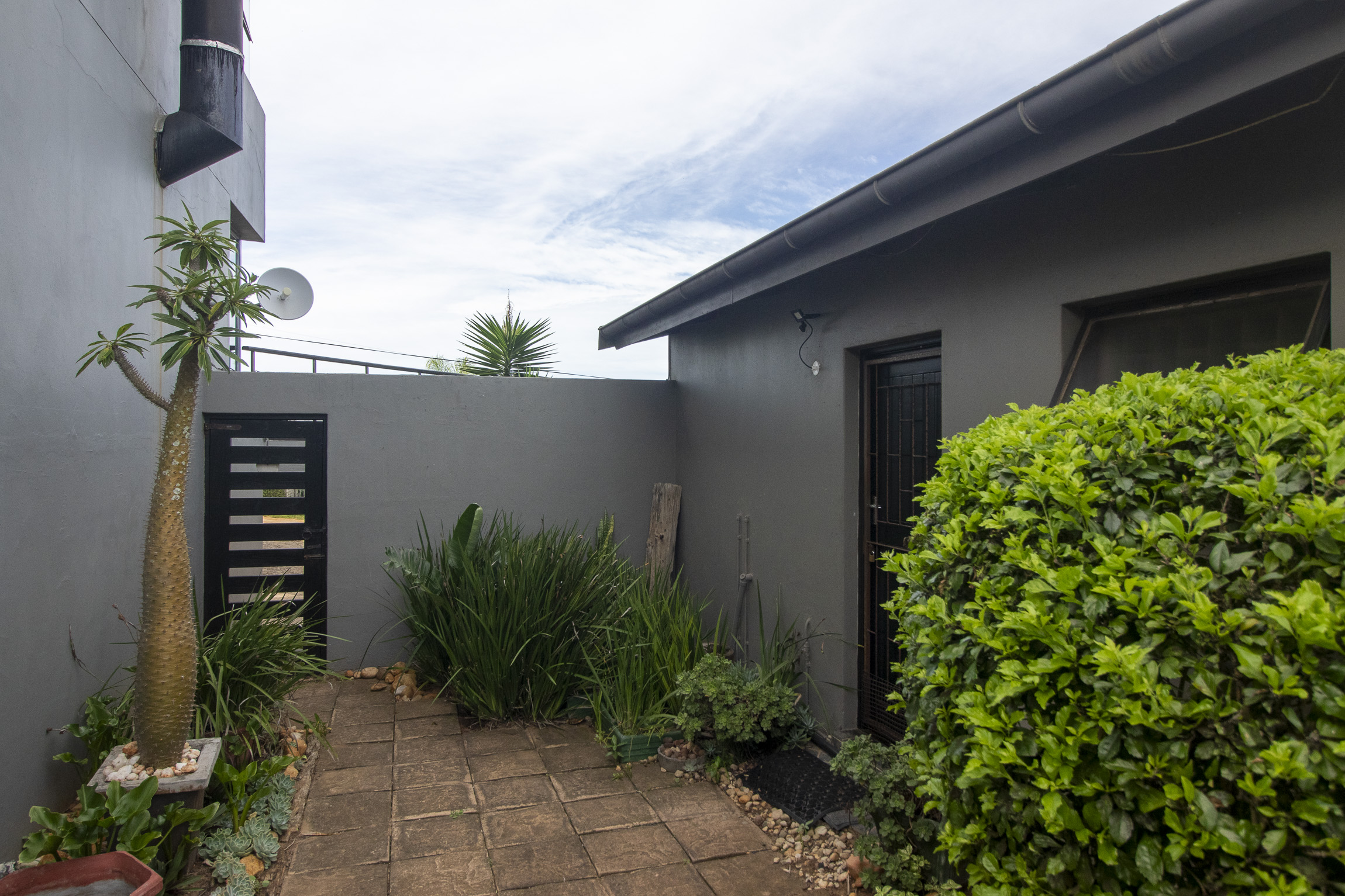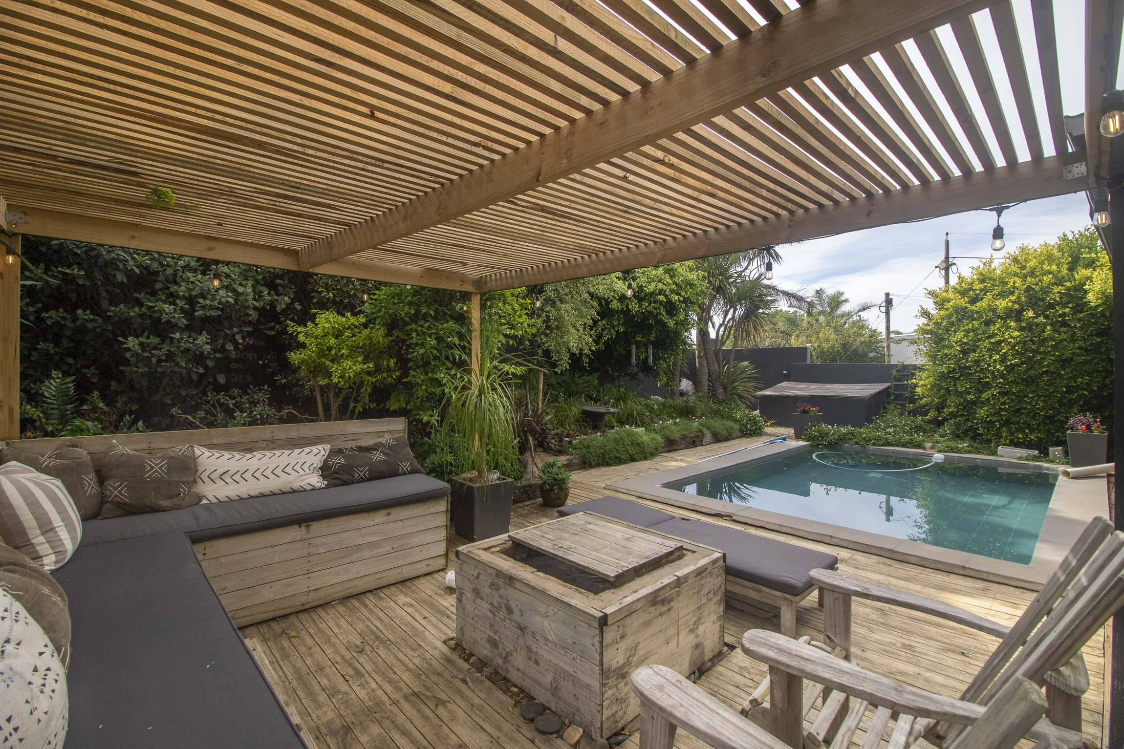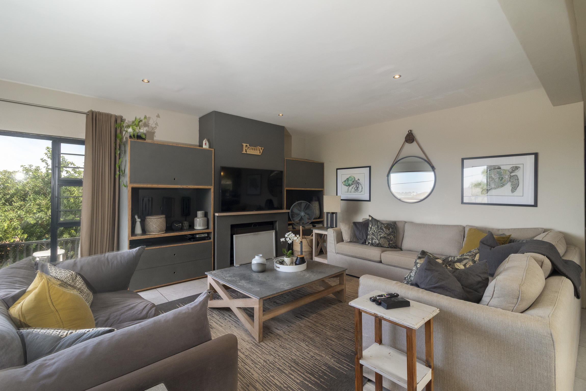Nestled on the serene and peaceful East bank of Port Alfred, this three-bedroom home offers a truly unique living experience, far from the noise of everyday life. Positioned on a prime corner plot, the property boasts sweeping views of the Port Alfred Marina, Harbour, and the ocean, making it an absolute haven. As you enter through the gates, you’re greeted by lush greenery that envelops you in tranquillity. The open-plan living and dining areas flow seamlessly onto a spacious outdoor patio and swimming pool area, complete with a cozy firepit, perfect for relaxing and entertaining. The lounge also features a separate deck that opens onto the roadside, ideal for enjoying your morning coffee while taking in the peaceful surroundings.