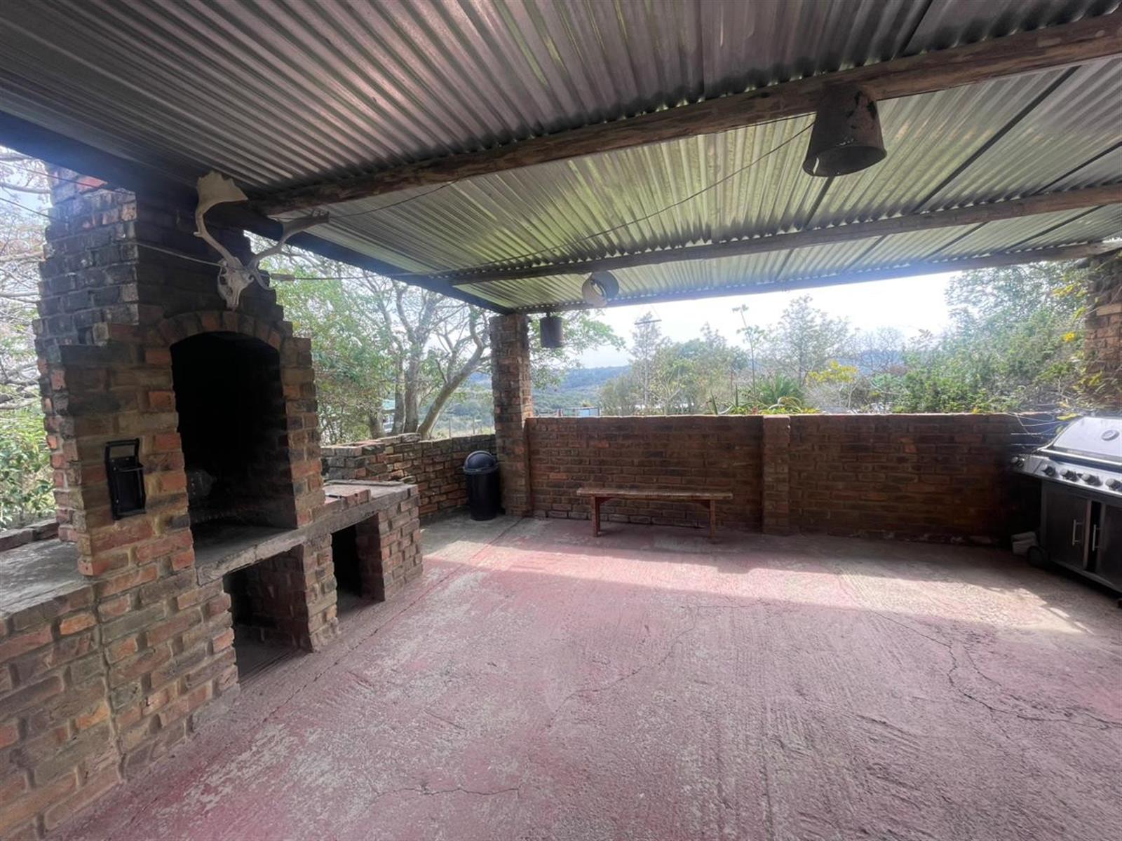 The main house boasts a cozy and welcoming atmosphere, featuring 3 bedrooms, a large kitchen area, and a scullery/laundry space. The family bathroom is well-appointed with a toilet, basin, bath, and shower. Additionally, there is a versatile fourth room, perfect as a study, playroom, or second lounge. For relaxing evenings with friends and family, enjoy the lovely undercover braai area.