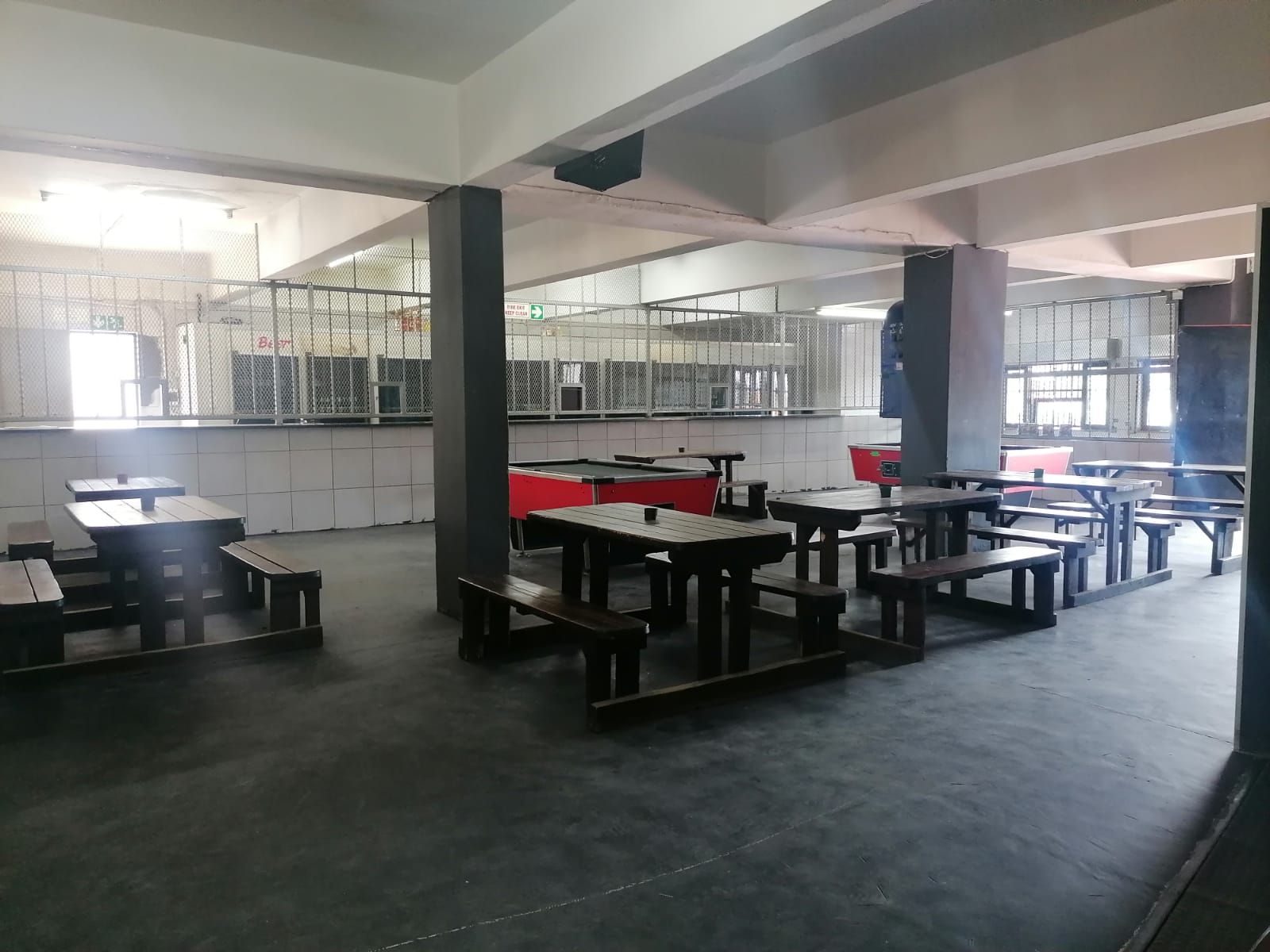 Spacious pub area with pool tables and granite counter