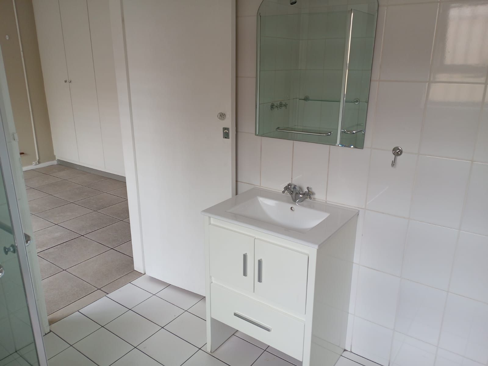 Light-filled and modern, with laminate flooring and built-in cupboards. Serviced by a dedicated full bathroom right outside the room.