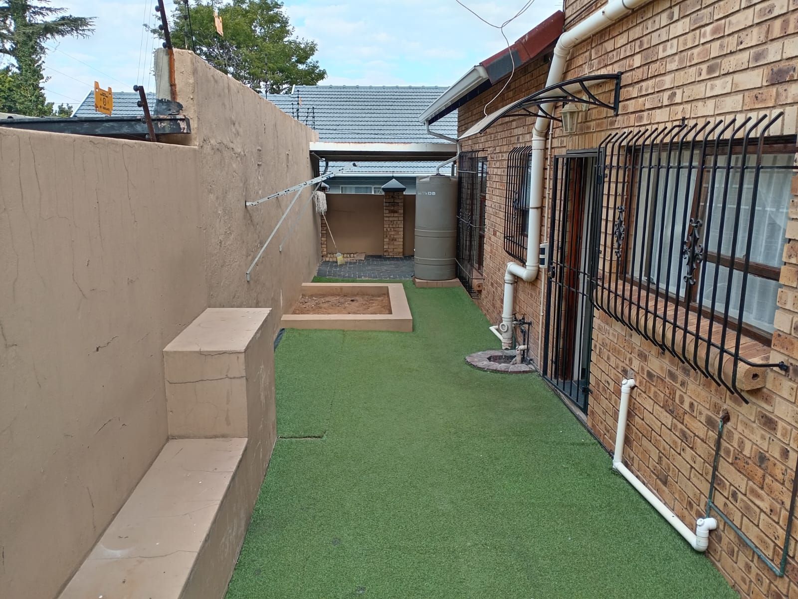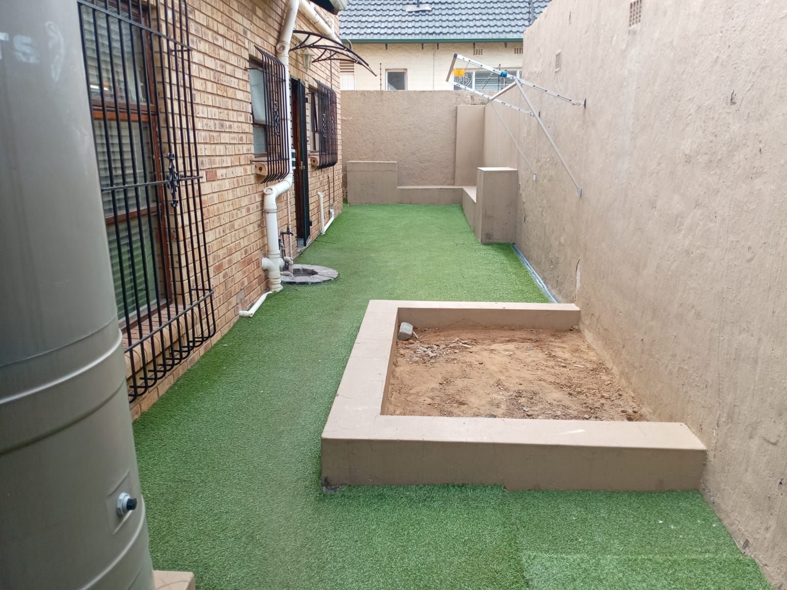 Astro turf lawn with sandpit – perfect for children.