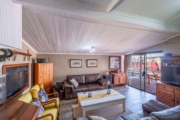 Classic family home near schools, church and town, offering relaxed indoor-outdoor living with covered stoep and open braai, mountain-and-town views, three bedrooms, single garage.