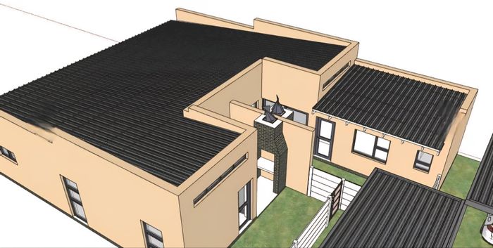 3-bedroom, 2-bathroom townhouse, 90 m², freehold ownership, semi-detached with built-in braai and single carport.