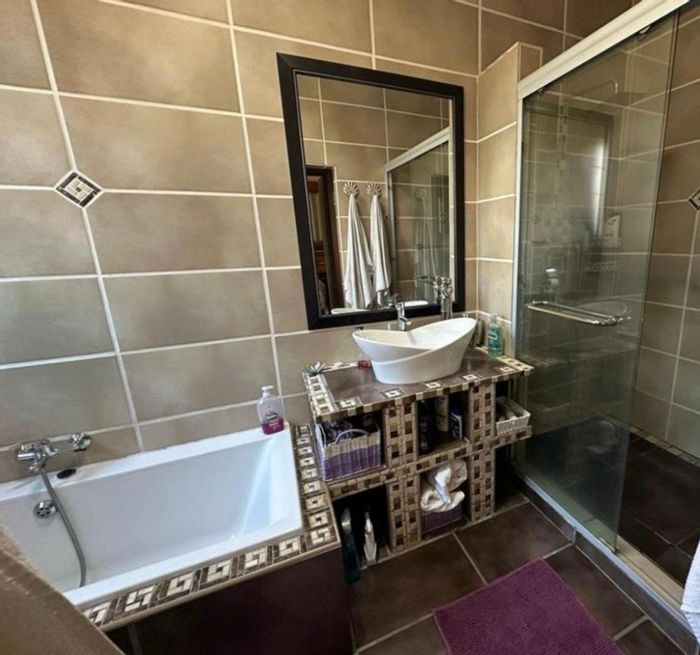 Entertainer’s haven in sought-after Heuwelkruin — large TV room opening to indoor braai and backyard for gatherings, modern mahogany kitchen, secure fully walled property with alarm; 4 beds, 2 baths, garage.