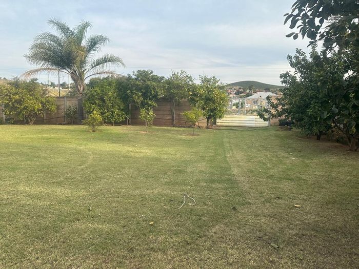 Perfect family canvas in a quiet, leafy neighborhood — expansive yard with mature fruit trees and undercover braai. Three bedrooms, two baths and double garage; generous plot for development.