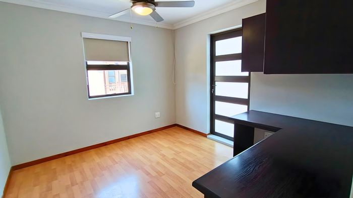 Enjoy relaxed, secure living in Abbotsford's quiet complex with a modern open-plan kitchen and dedicated braai overlooking a lush garden — two bedrooms, one bath and double covered parking.