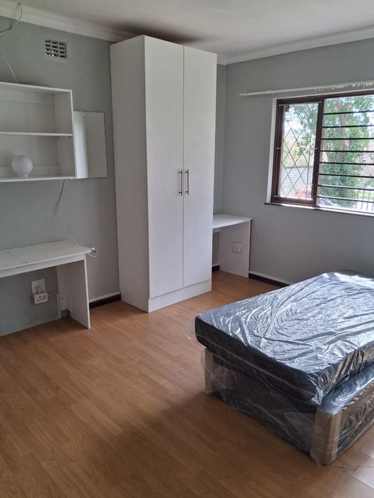 Affordable student rooms close to campus and transport, ready for immediate move-in; shared kitchen and bathroom, five bedrooms, three baths, one covered parking. R2640/month.