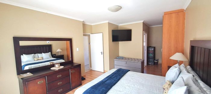 Entertainer's dream for seamless indoor–outdoor living in a peaceful neighborhood, with entertainment-ready pool and built-in braai, designer kitchen, five bedrooms, four bathrooms, double garage.