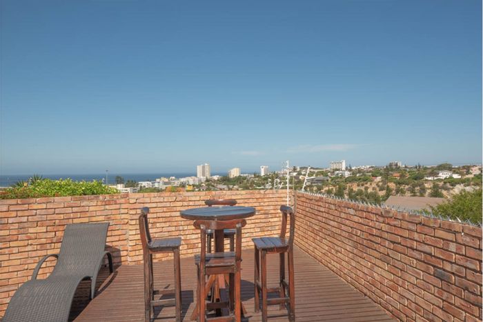 Entertainer's coastal retreat in Humerail, Eastern Cape — minutes from the beachfront and airport — with rooftop terrace and sea views, landscaped garden, modern granite kitchen; six en-suite bedrooms.