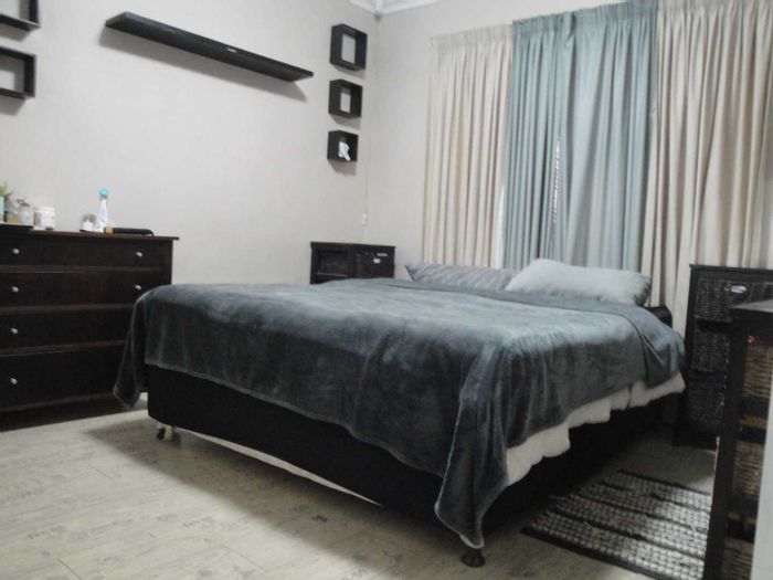 Relax in a peaceful, secure, dog-friendly complex with enclosed garden and undercover braai area — open-plan lounge and fitted kitchen, two bedrooms, one bathroom, single garage.