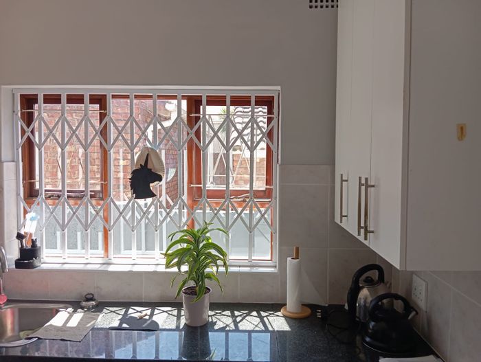 Community-focused South End living with pool and braai area; private unfurnished bedroom and ensuite in a secure complex, parking bay included — shared with a quiet elderly gentleman.