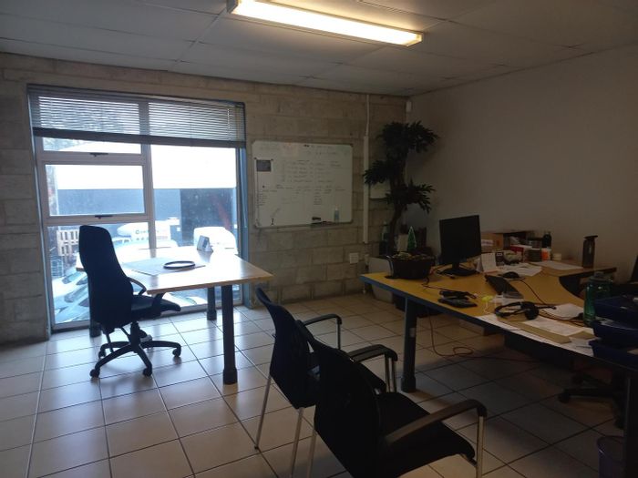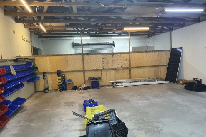 Ideal for efficient logistics and quick dispatches, this 100 m² warehouse in a secure complex near the airport and major routes features a large industrial door, kitchenette, and two ablutions.