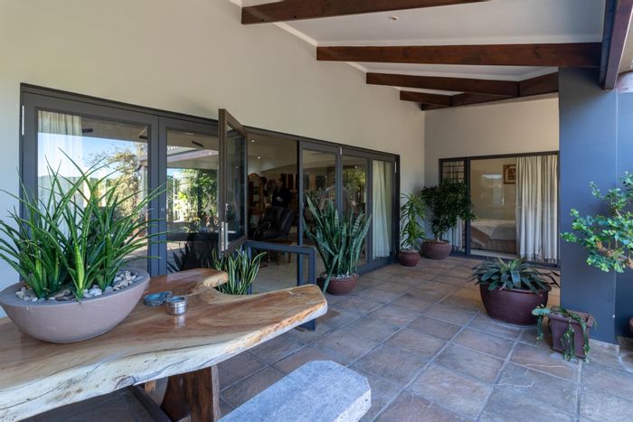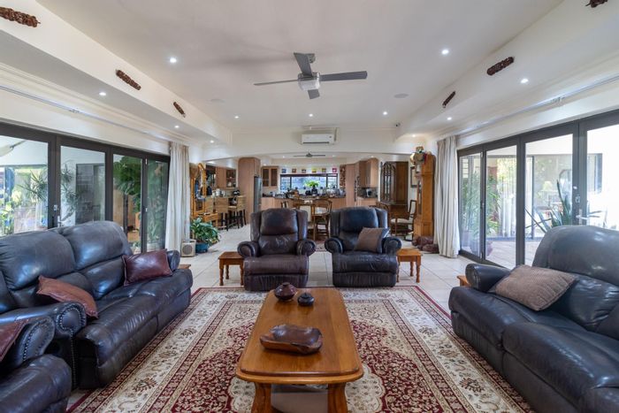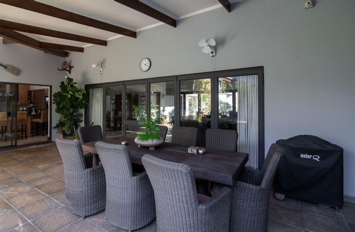 Enjoy riverside living on the West Kleinemonde with panoramic river-to-ocean views, double-volume living opening onto a large deck with braai nook — includes five bedrooms, four baths, double garage.