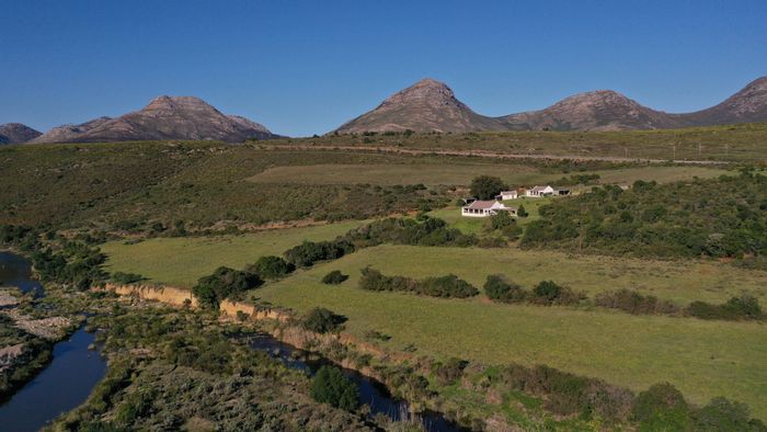 Riverside Langkloof retreat 3km west of Kareedouw on the R62, offering gravity-fed house water, five self-catering cottages, Krom River swimming, extensive fynbos and farmland, main house plus second dwelling.