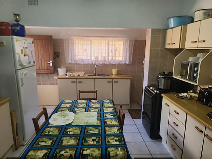 Embrace relaxed country living in Kareedouw, framed by Tsitsikamma mountains and near Jeffreys Bay; large 1,375m² plot with lush floral garden, cozy fireplace, three beds, one bath, double garage.
