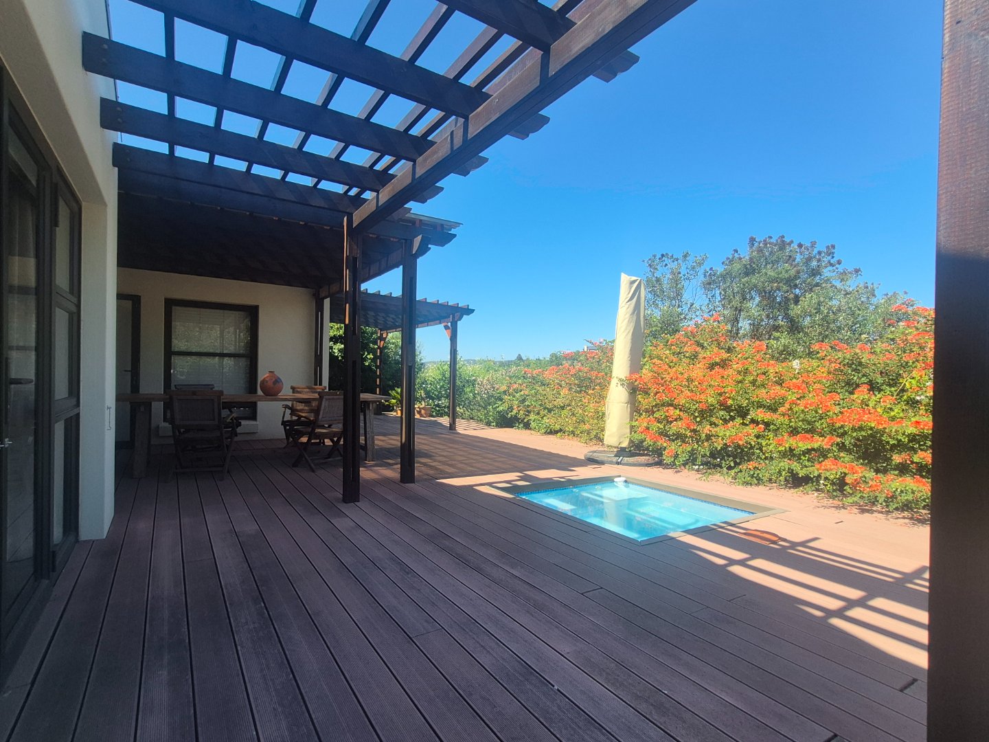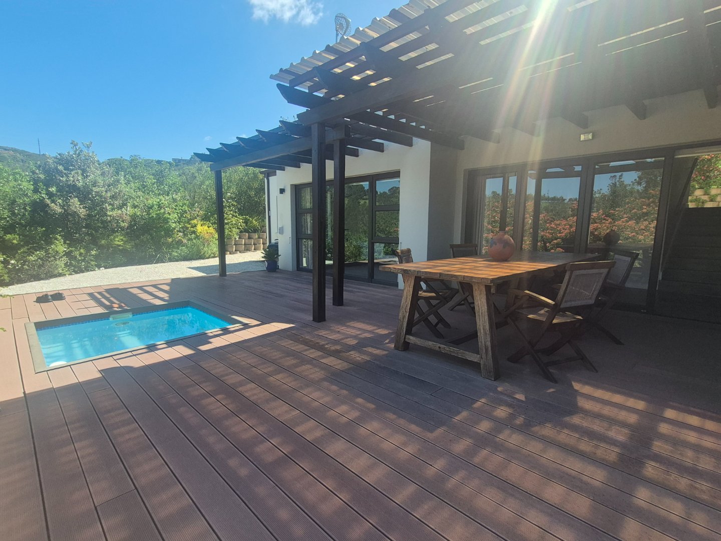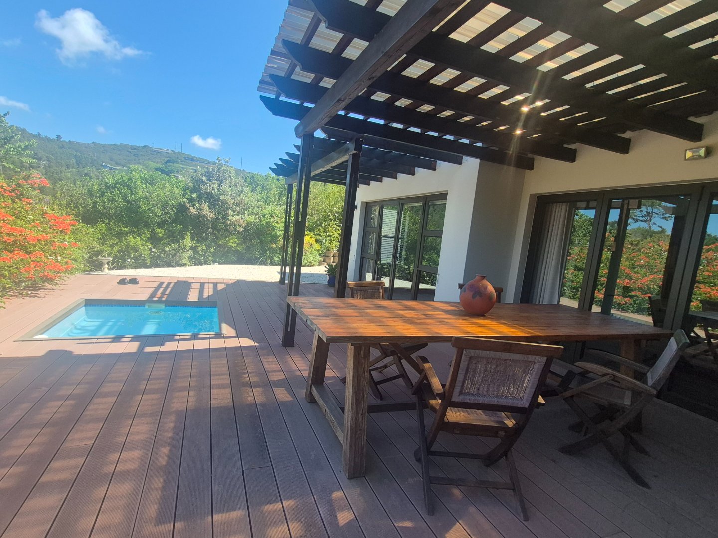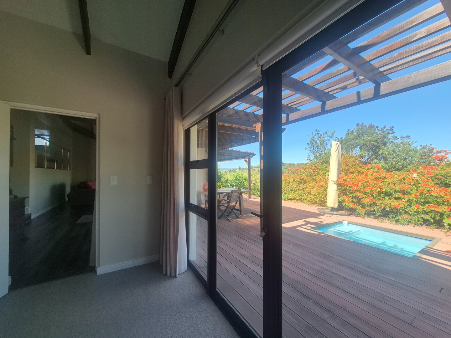 Glass doors from the lounge and main bedroom open onto a deck with plunge pool — perfect for relaxing.