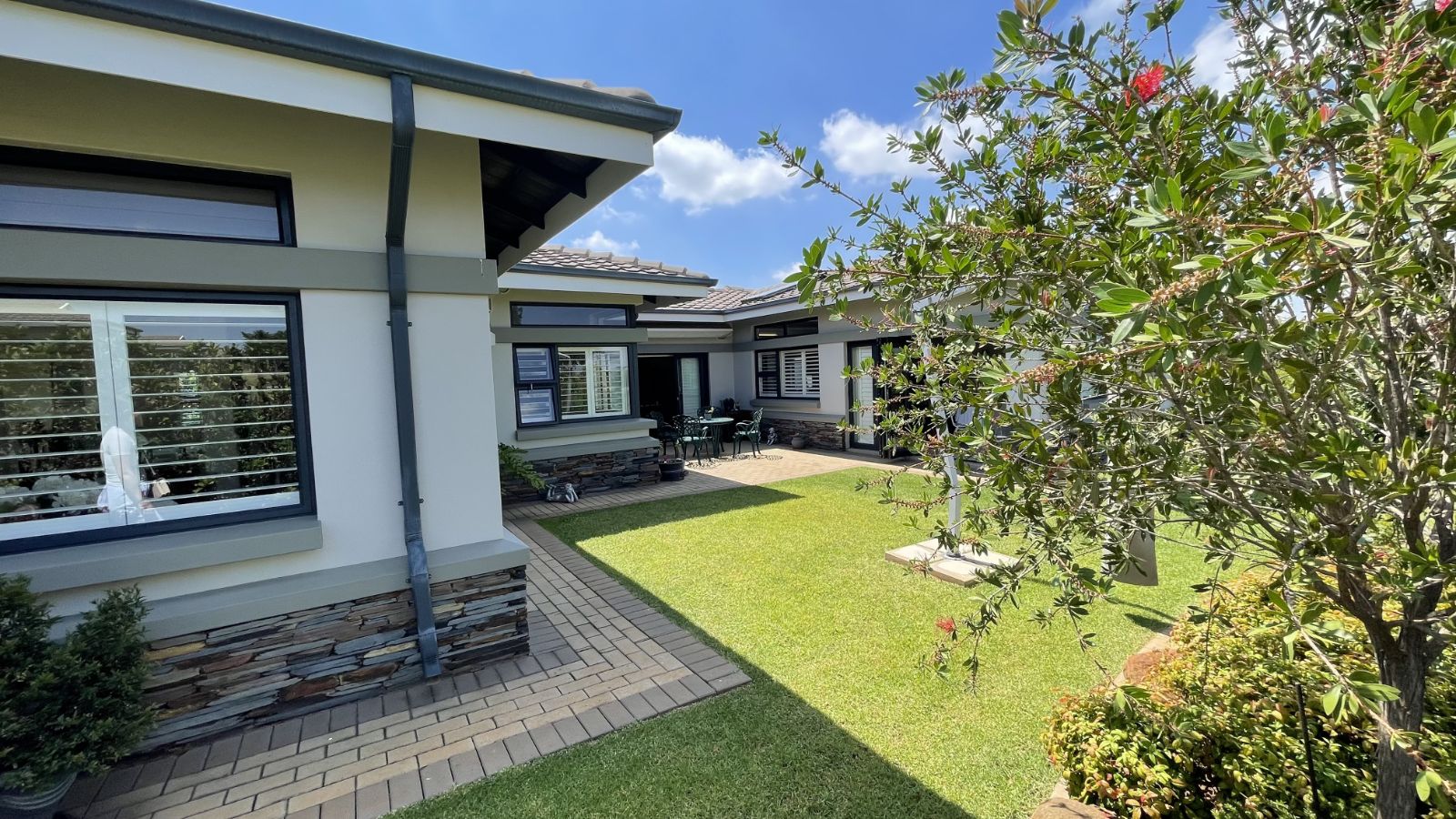 Some extras include: solar system, air-conditioning, expanded courtyard with wendy house and jacuzzi, BIC in the expanded double garage, not to mention the shutter doors and roller blinds...