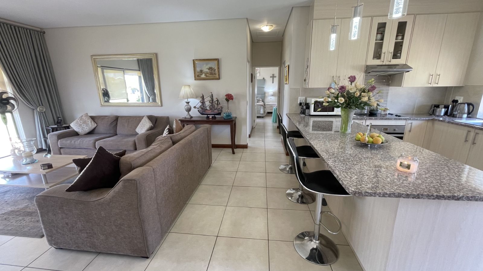With its 2 bedrooms and 2 bathrooms this home is adequately spacious for two. The kitchen and lounge are generously spacious and look out onto a beautifully established garden.