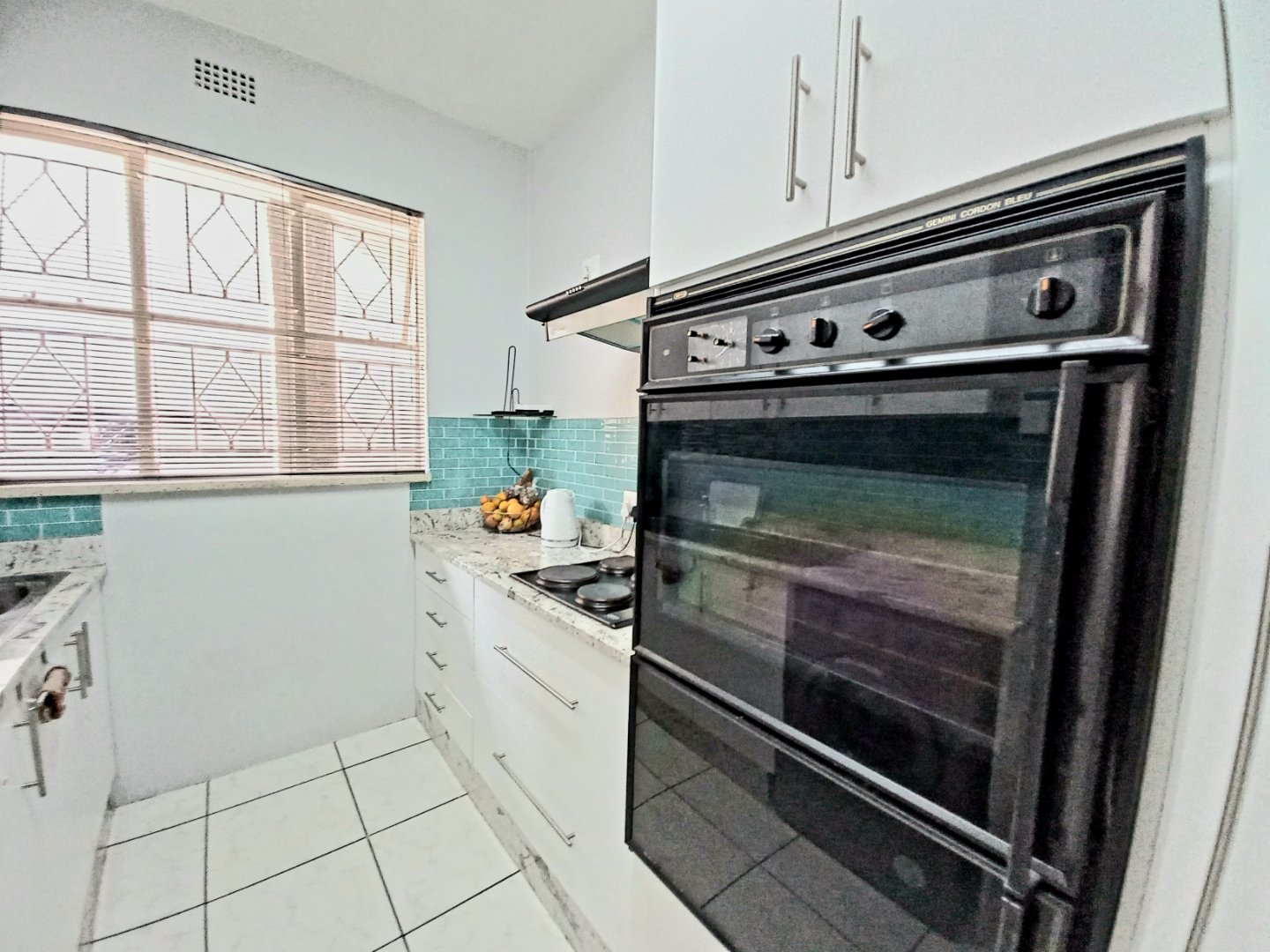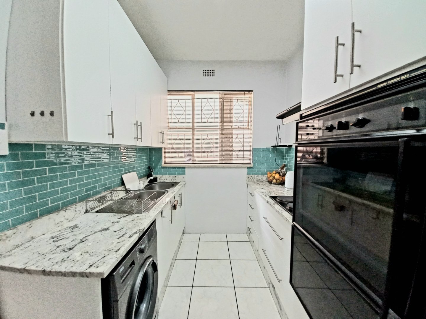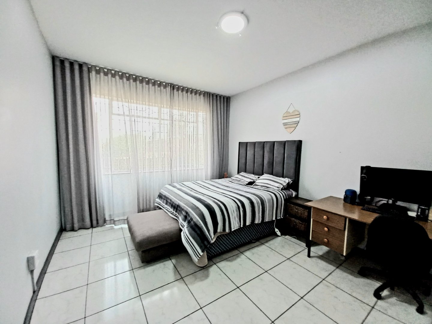 The apartment offers two well-sized bedrooms with ample built-in cupboards and two fully tiled bathrooms—one with a bath, basin, and toilet, and the other with a shower, basin, and toilet. The unit is tiled throughout and includes burglar bars on all windows for added security. A single covered carport is provided, and the complex is exceptionally secure with a well-maintained appearance, double gated pedestrian and vehicle entrances, and a peaceful garden setting. This move-in-ready home is perfect for anyone seeking comfort, space, and peace of mind.