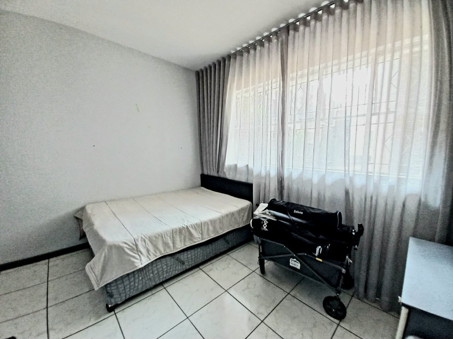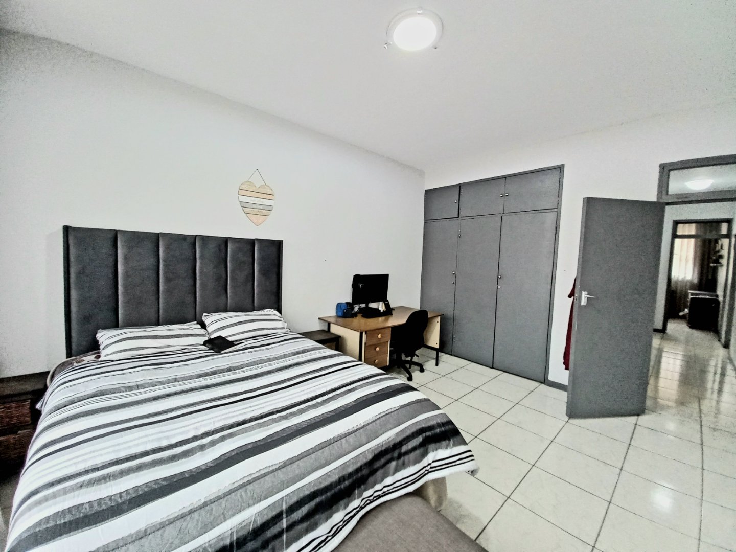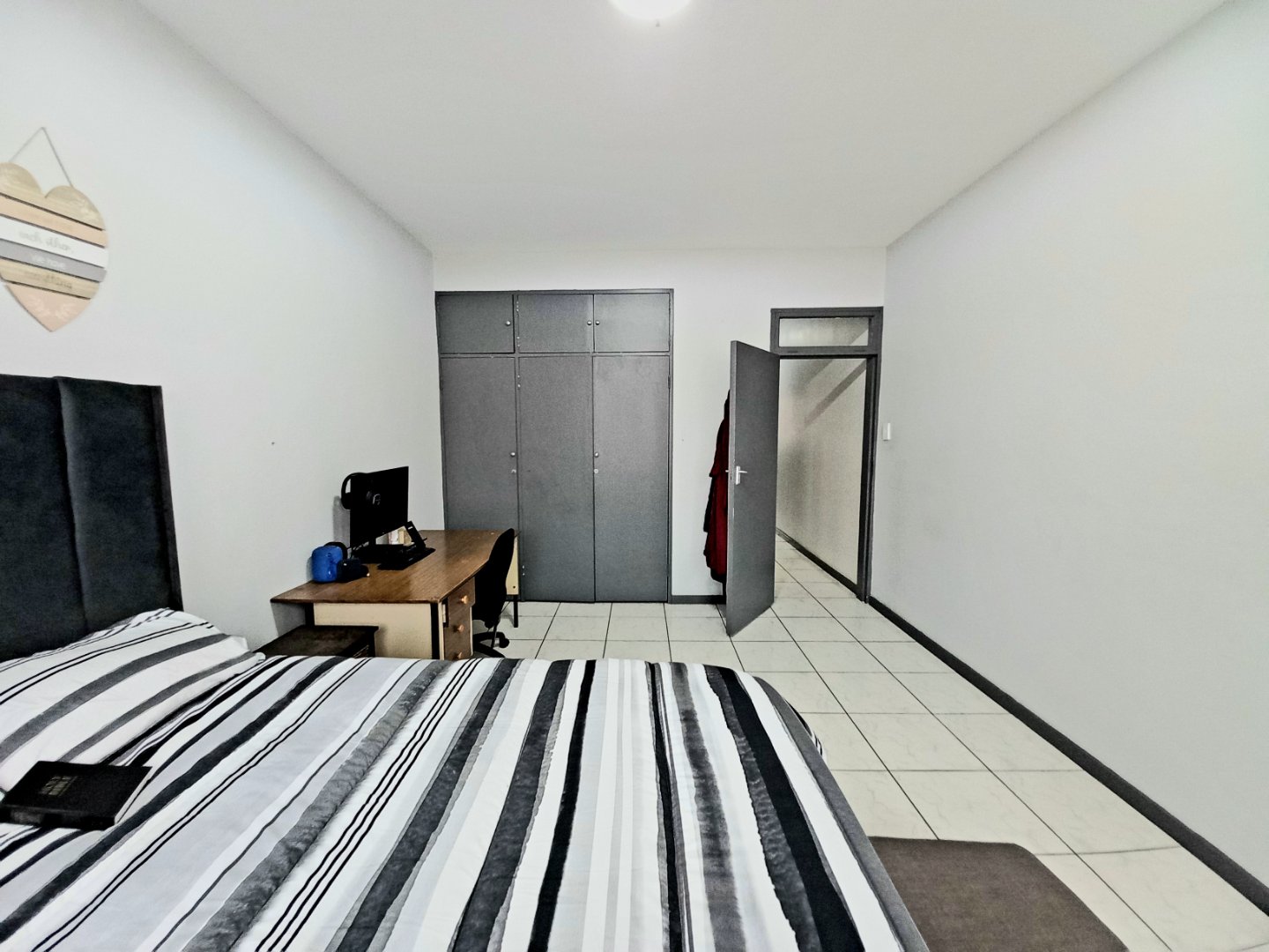 The apartment offers two well-sized bedrooms with ample built-in cupboards and two fully tiled bathrooms—one with a bath, basin, and toilet, and the other with a shower, basin, and toilet. The unit is tiled throughout and includes burglar bars on all windows for added security. A single covered carport is provided, and the complex is exceptionally secure with a well-maintained appearance, double gated pedestrian and vehicle entrances, and a peaceful garden setting. This move-in-ready home is perfect for anyone seeking comfort, space, and peace of mind.