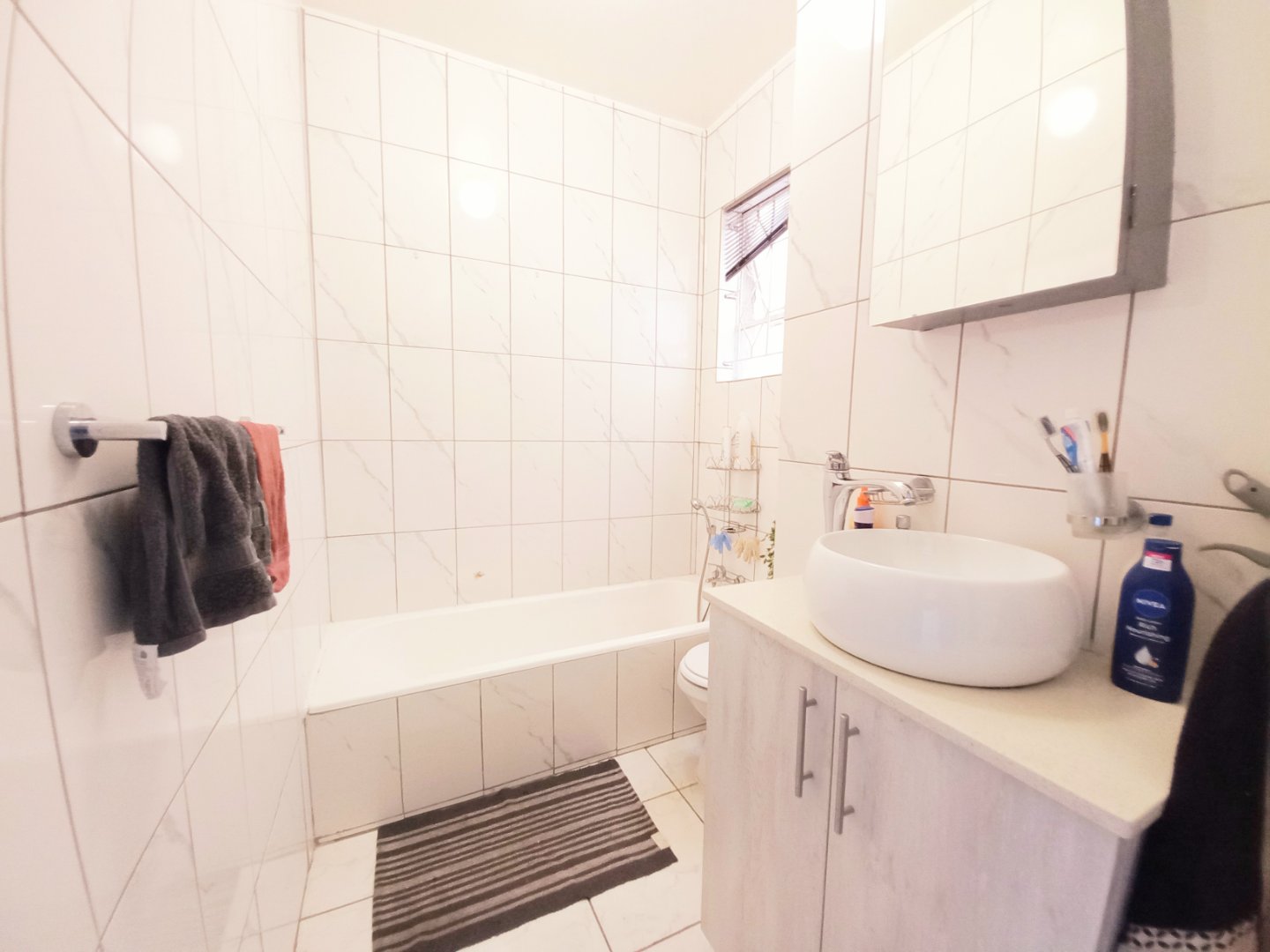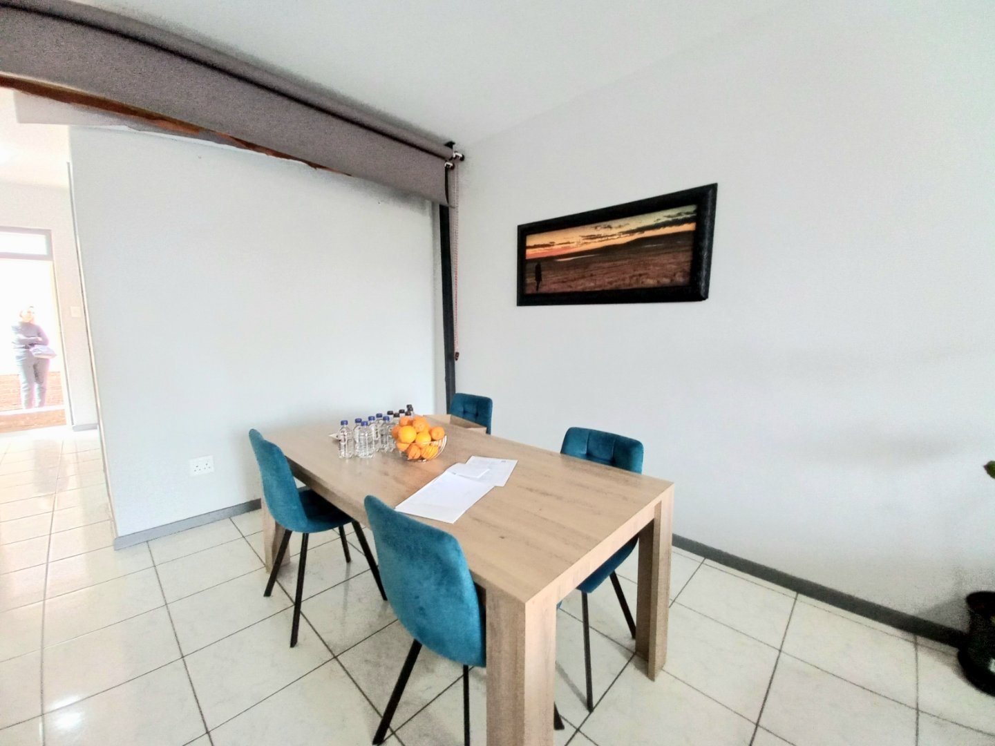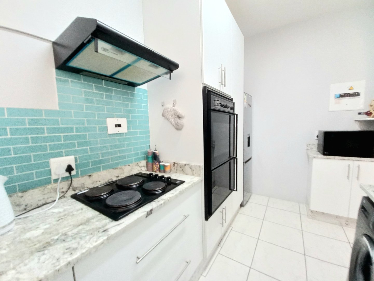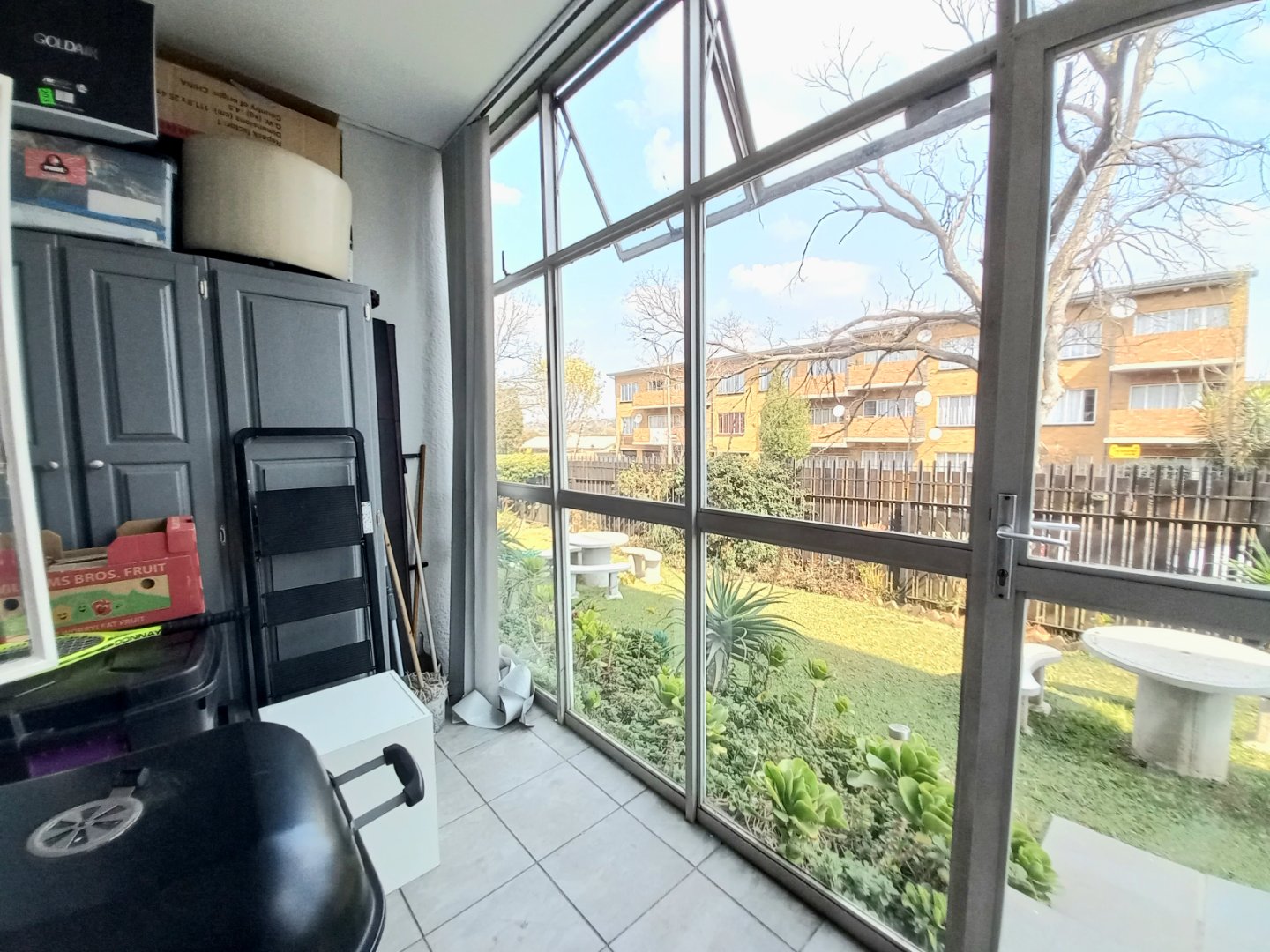 This beautifully maintained 95sqm ground floor apartment is situated in the heart of Eastleigh, Edenvale, close to all major amenities. The kitchen is both stylish and functional, featuring granite countertops, plenty of built-in cupboards, electric stove, extractor fan, eye-level oven, and space for a front loader washing machine. The open plan dining room flows seamlessly into the spacious tiled lounge, which leads out to an enclosed balcony and a shared garden area with a built-in concrete table and benches—ideal for entertaining or enjoying a relaxed braai.