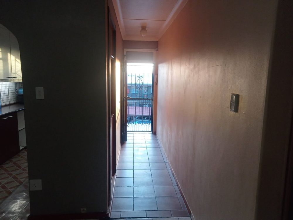 This apartment offers a spacious living area. Kitchen with ample built-in cupboards and space for appliances.