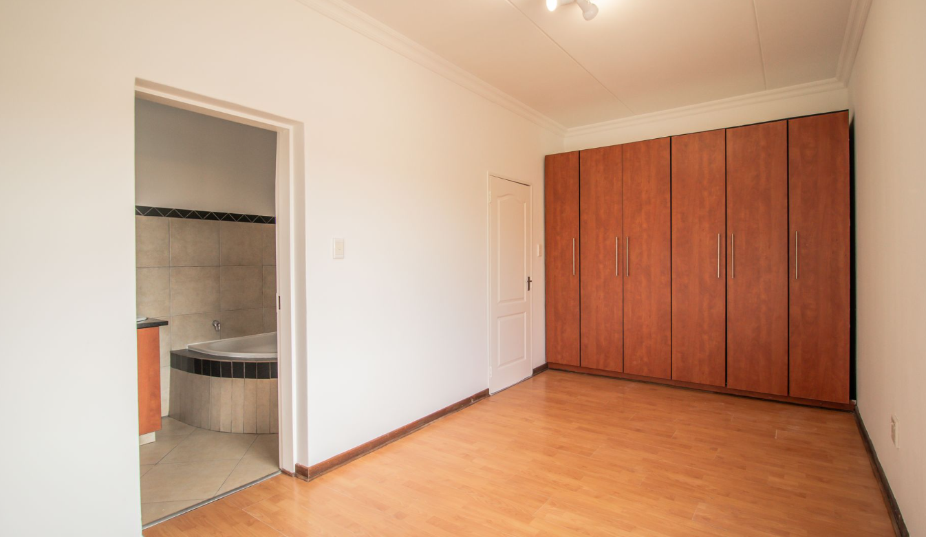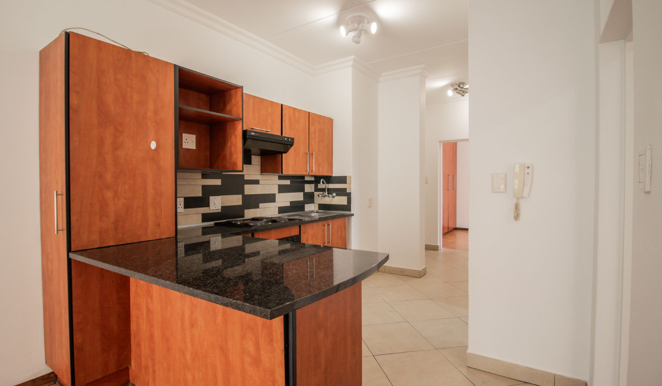 Located in prime position in Edenvale with easy access to all highways connecting you to Sandton CBD, OR Tambo Airport and Johannesburg CBD within minutes. Conveniently positioned and within close proximity to Greenstone shopping centre & several more amenities. Your peace of mind is assured with 24/7 on site security. Secure, 1st floor apartment in Eastleigh Ridge, Edenvale. Fibre ready & DSTV connection in existence. This neat apartment opens into a foyer which leads to the open plan living area/lounge and sliding door to the private balcony. The kitchen has granite tops and neat melamine cupboards in cherry finish. A generous serving counter doubles up as an eating area where some barstools would make a great addition. There are two spacious bedrooms with built-in cupboards. Both bedrooms have space for large desks which makes this an excellent work from home property. The main bedroom is so much more spacious than the newer sectional title complexes & has ample cupboard space. There are two modern bathrooms, the main-en suite boasts a large corner bath & shower(over bath). The large second bathroom has a shower, basin, toilet & under counter washing machine connection. Both bathrooms have granite countertops. A definite plus are the TWO undercover ground level secure parking bays. Additional visitors parking available. Don't miss the opportunity to own your own stylish apartment. No Pets Allowed