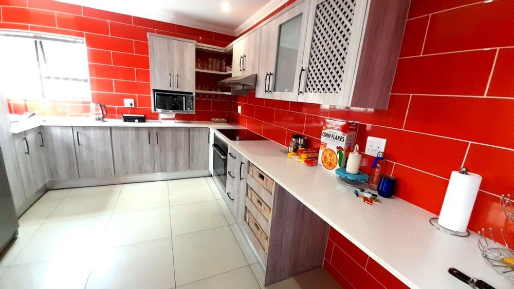 This phenomenal 5-bedroom mansion offers a spacious layout, featuring two living rooms, two dining areas, an entertainment zone, and a double garage. Conveniently situated just 5 kilometres from the Mall of Africa, the property boasts a remarkable kitchen equipped with a substantial built-in unit, including a stove, oven, and extractor.
