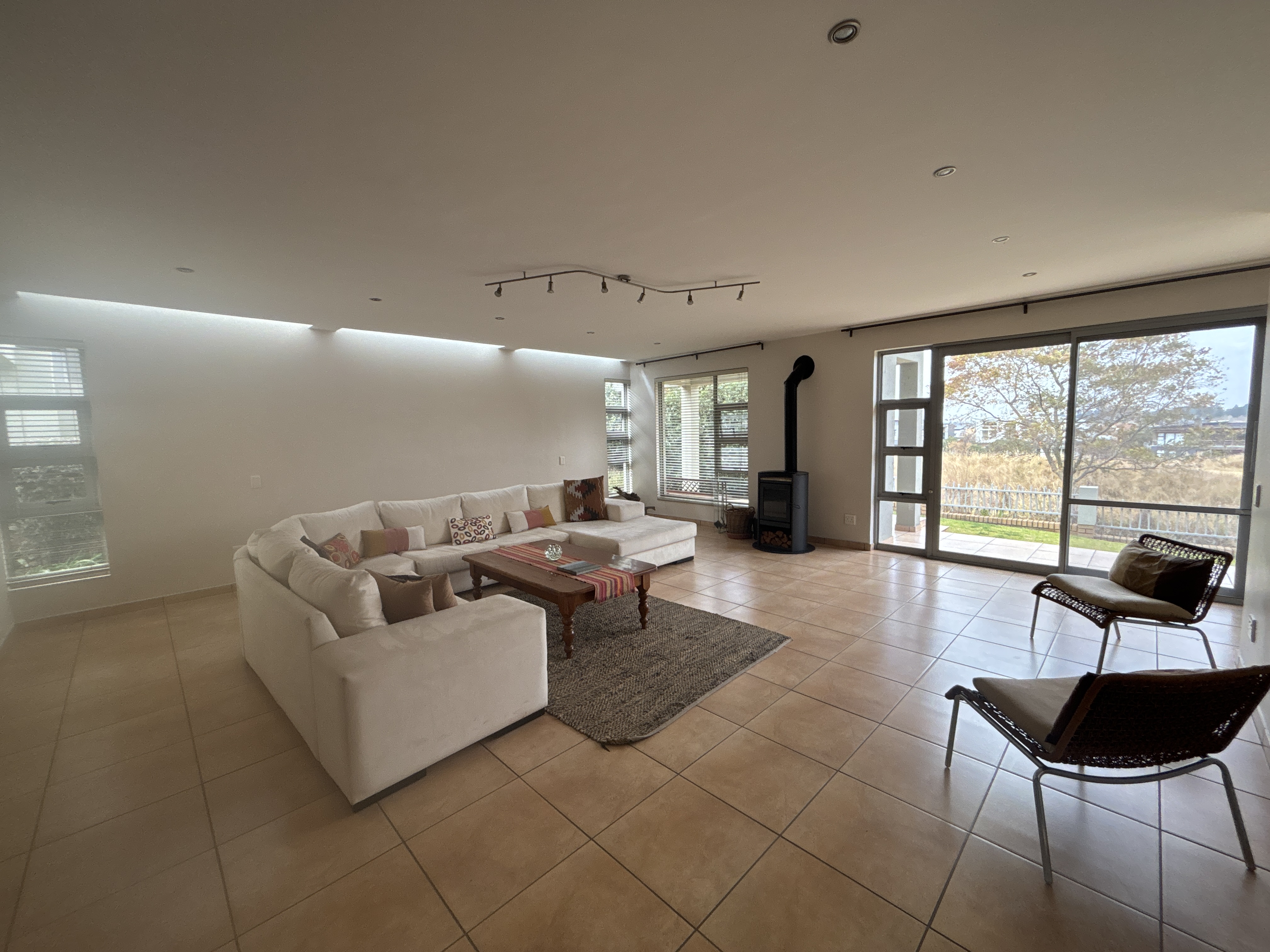 The main of the four spacious bedrooms features its own en-suite bathroom, providing privacy and convenience . The home boasts a stylish open-plan lounge with a slow-combustion fireplace, a modern kitchen, and expansive outdoor spaces perfect for entertaining or relaxing in tranquil surrounds.