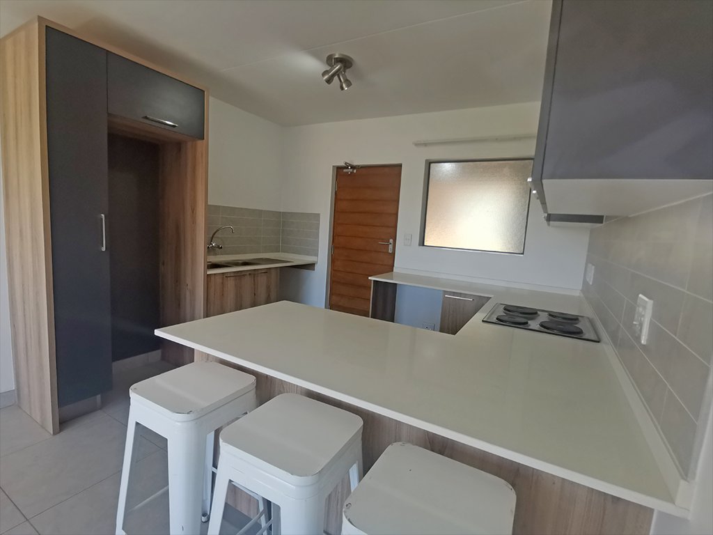 The Kitchen has an electric stove, hob, and space for two under-counter appliances.