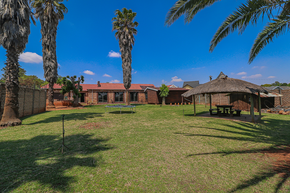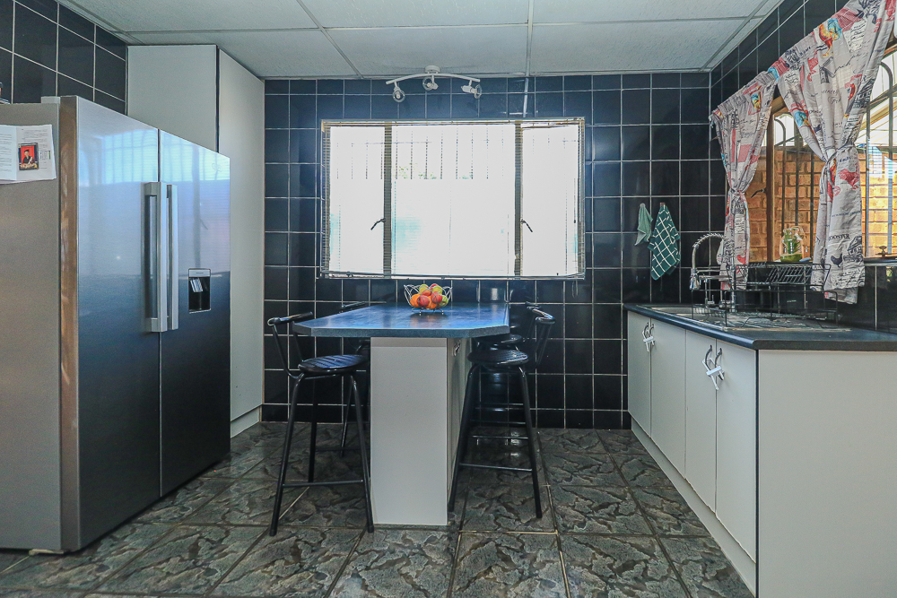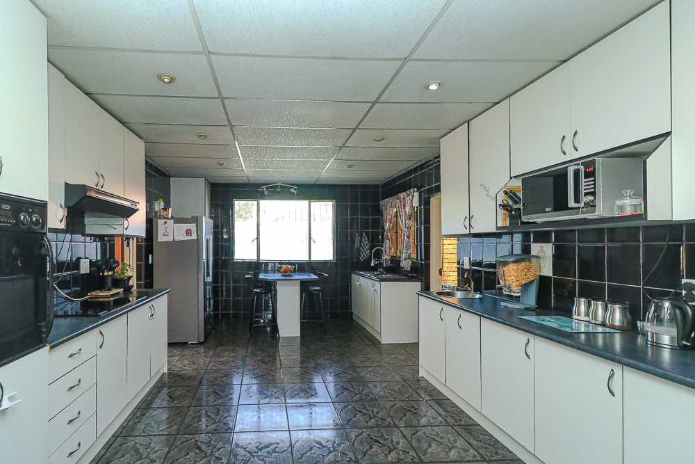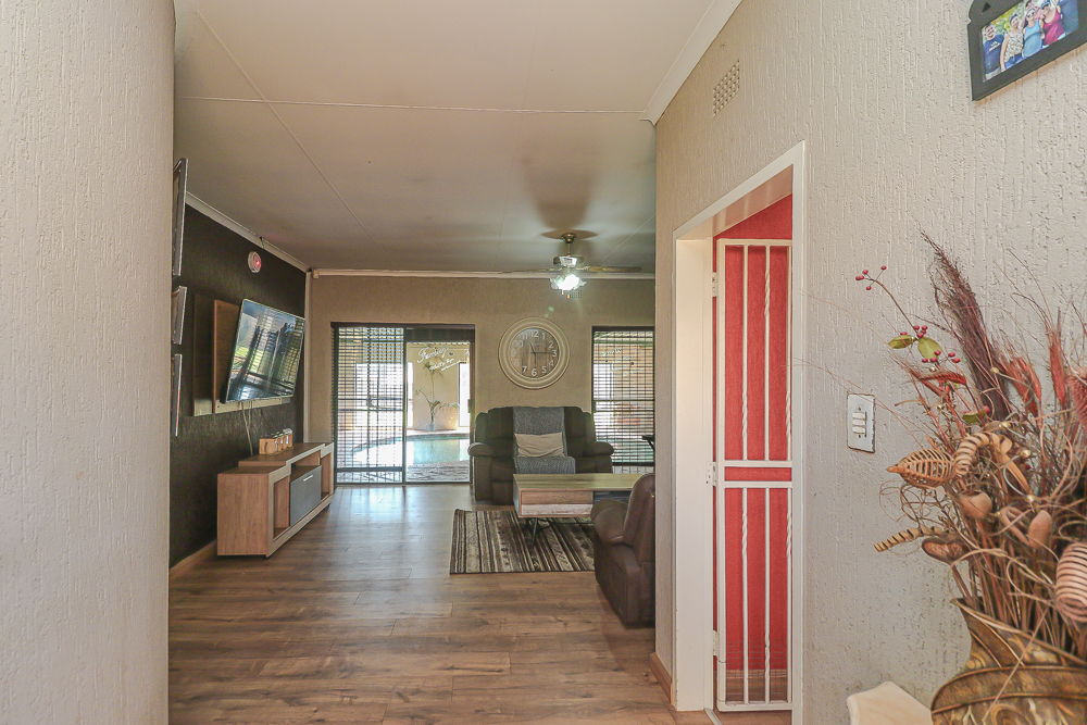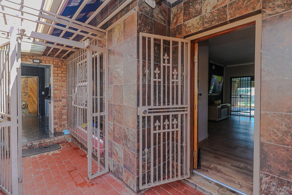 Practical touches enhance everyday living, including a double garage, double carport, and excellent security with an electric fence, alarm system, 12 cameras, and full burglar proofing. The home also features a borehole with JoJo tank, prepaid electricity, fibre internet, and a tiled roof. A wide front patio sets the tone for relaxed mornings or sunset gatherings.