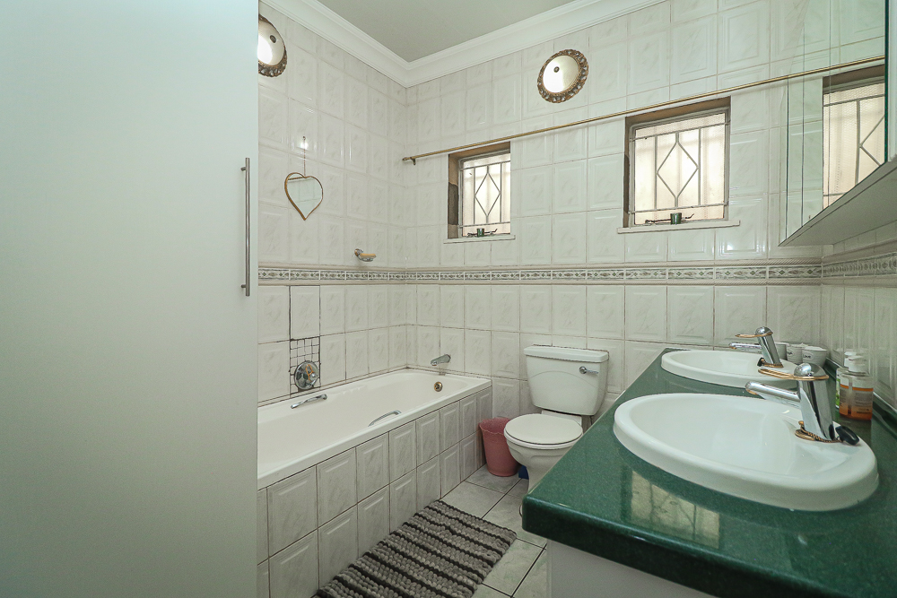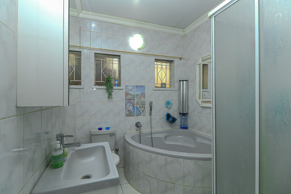The home offers three comfortable bedrooms, all fitted with built-in cupboards. The main suite includes a private en-suite bathroom with a bath, double vanity, and toilet, while the second full bathroom serves the rest of the home with ease.