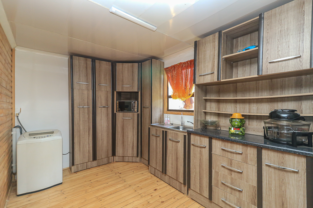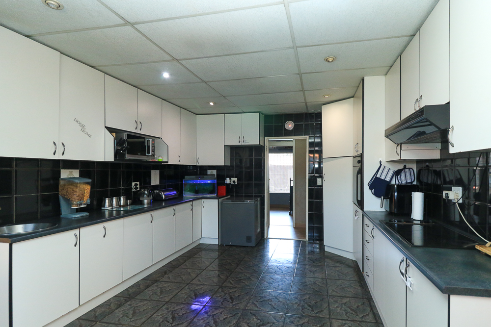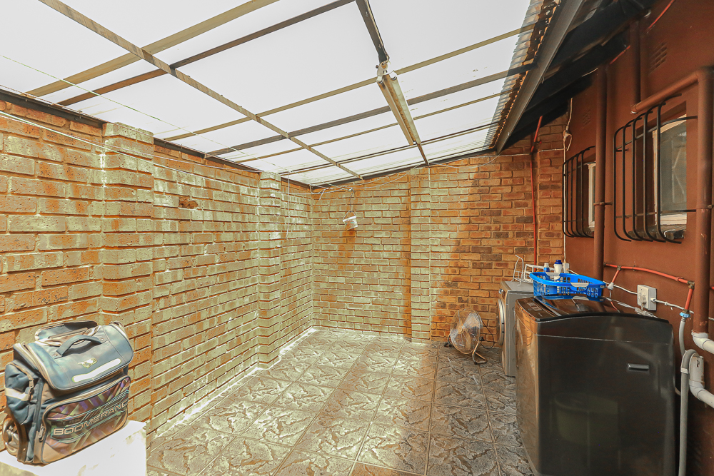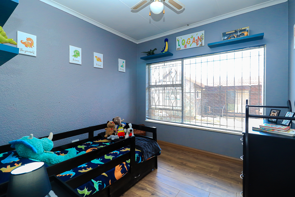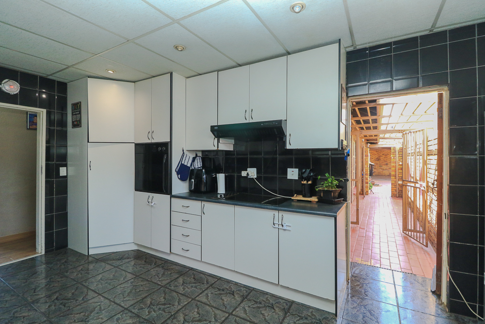 The home welcomes you with a generous open flow and warm, inviting atmosphere. The well-appointed kitchen is both functional and stylish, featuring a glass hob, extractor fan, and eye-level oven. Ample cabinetry provides excellent storage, while the built-in dining nook creates the perfect spot for family breakfasts. A separate scullery and laundry ensure that everything stays neatly out of sight.