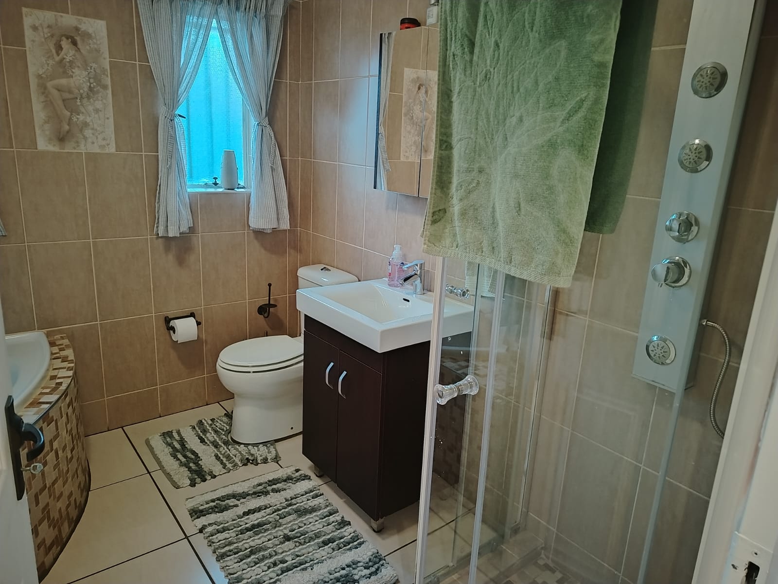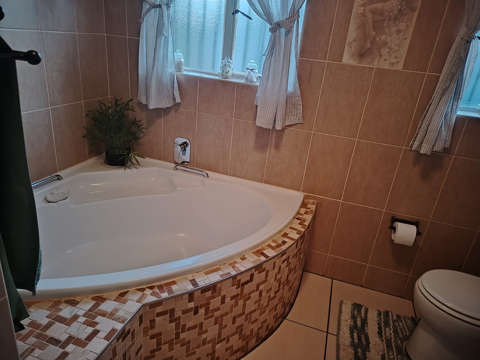 The fully tilled bathroom boasts a corner bath for comfort bathing and a lovely shower with toilet and basin. Entire home fully tilled, with the bedrooms flooring laminated to ensure maximum comfort.